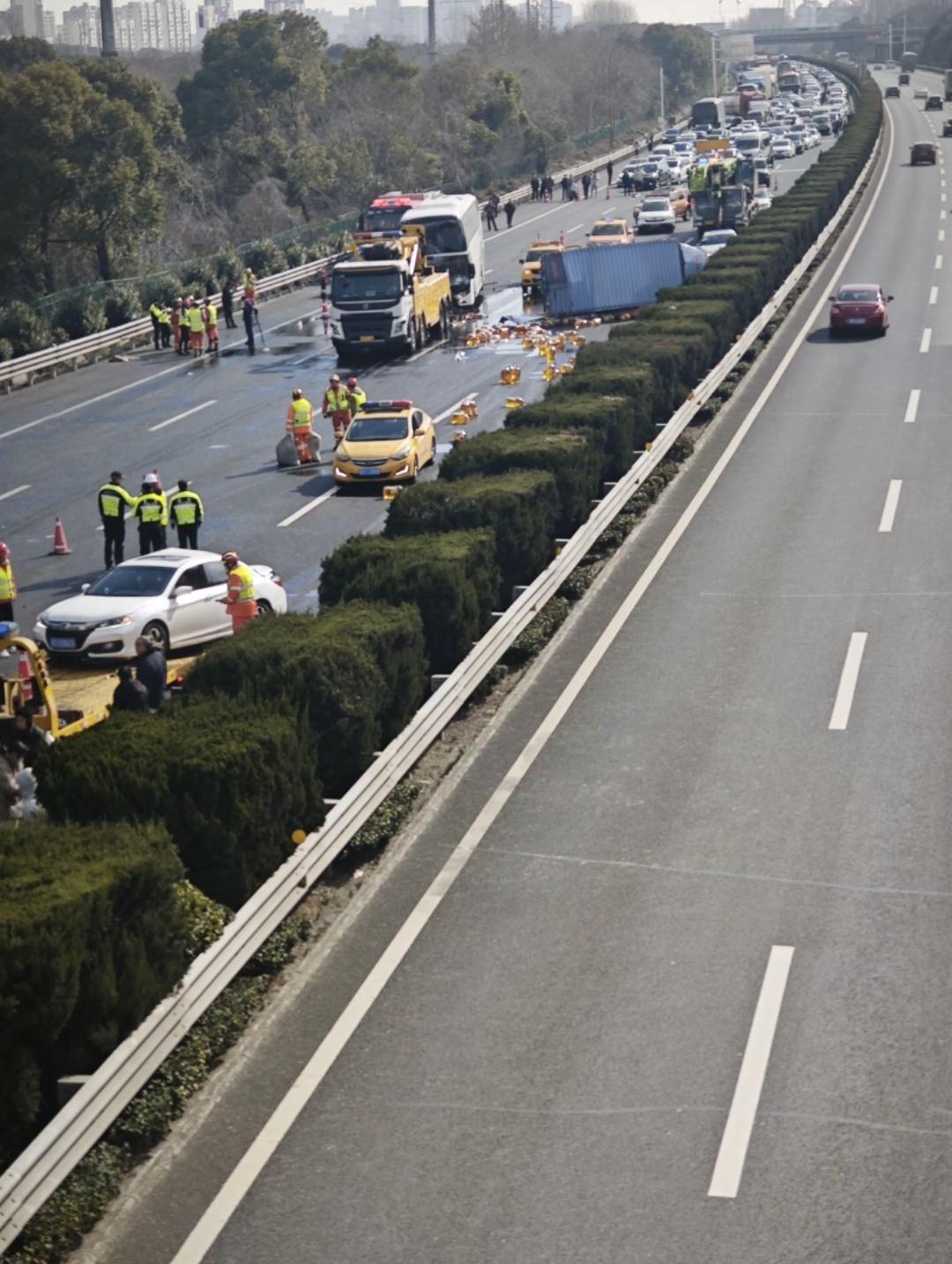 2月9日,沪蓉高速常州段大堵车两个小时! 应该有不少人从这个高速上下来走地面的道路吧,横山出口、青龙出口、常州出口都有大量的车下来,受事故影响,对沪蓉高速上海往常州方向造成的交通阻断,现场进行了全封闭式救援。 一辆大巴车,一辆中型货车,两辆小型客车受损,提醒广大驾驶员朋友,春运高峰期车流量加大,务必提高安全驾驶意识,遇到事故的时候不要着急,有条件的情况下,要迅速撤离至应急车道。 各位是怎么看的?欢迎评论区留言。
