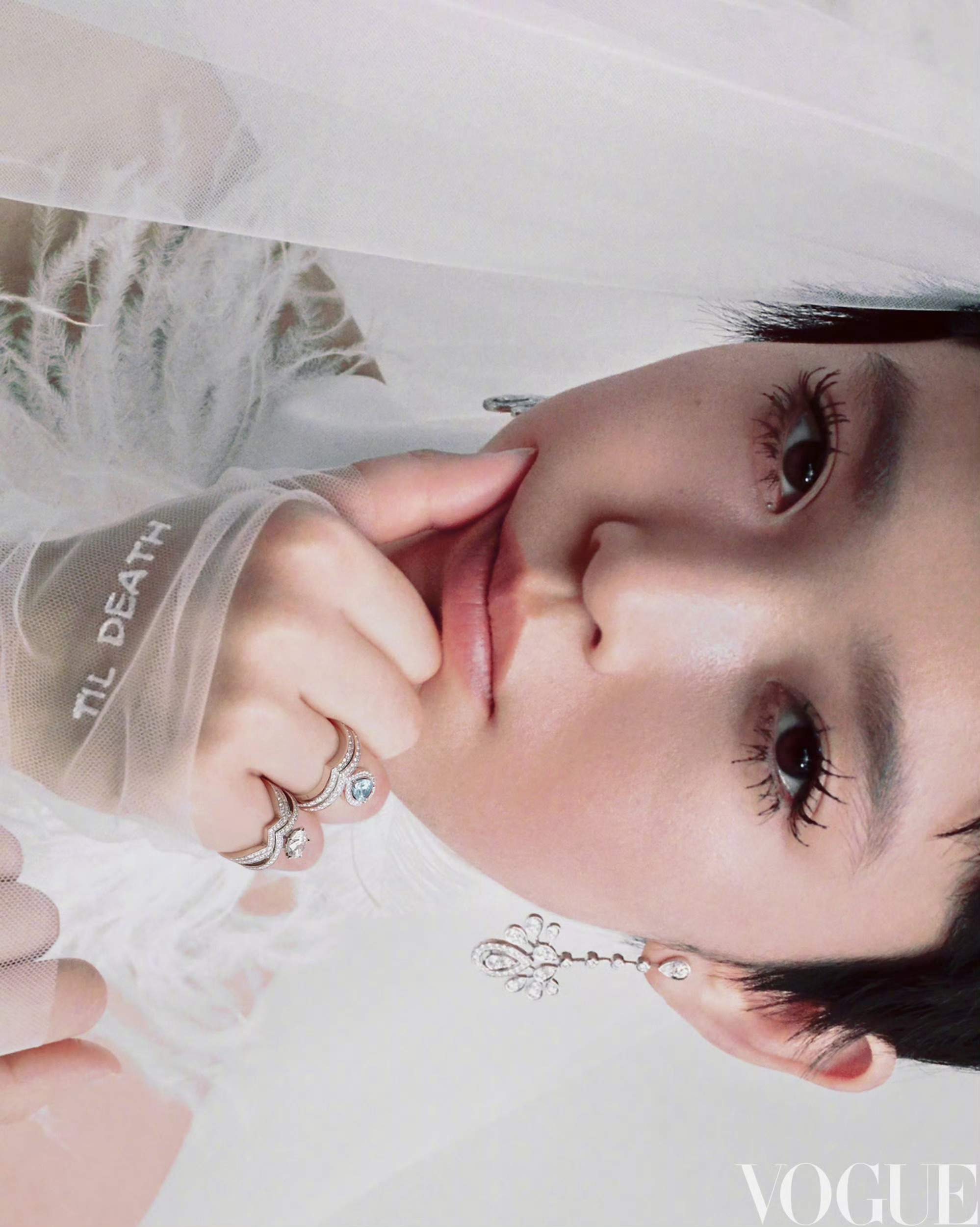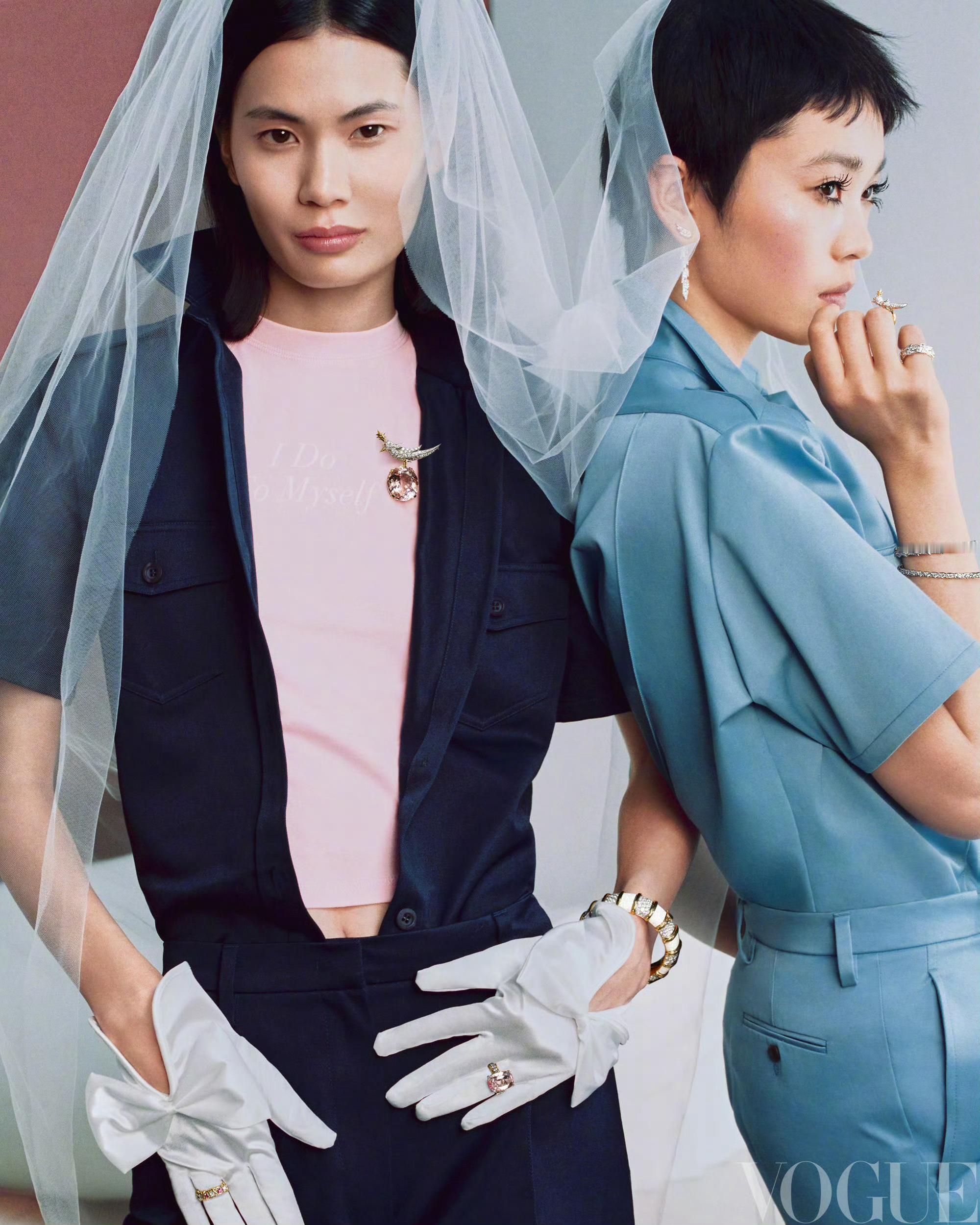 撕开新娘华服这层甜美的彩虹糖纸,显露的不是童话,而是真实的自我。所谓的“浪漫仪式”,在此被解构、重组。在通往婚姻殿堂的红毯上,我依然是我——不被规训,不被束缚,我行我素。VOGUE二月号摄影:黄家奇模特:齐浩洁、赵珂、Rosina