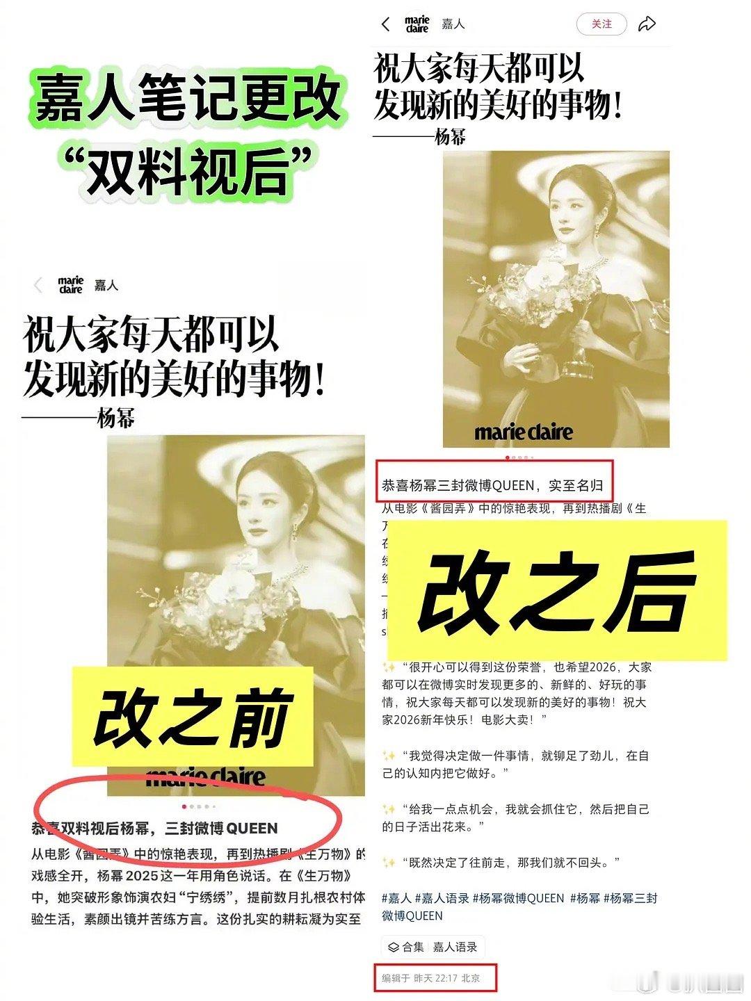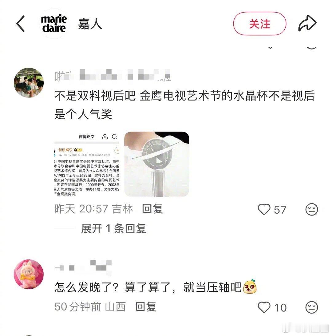 嘉人发杨幂是双料视后,评论被冲了之后修改了~