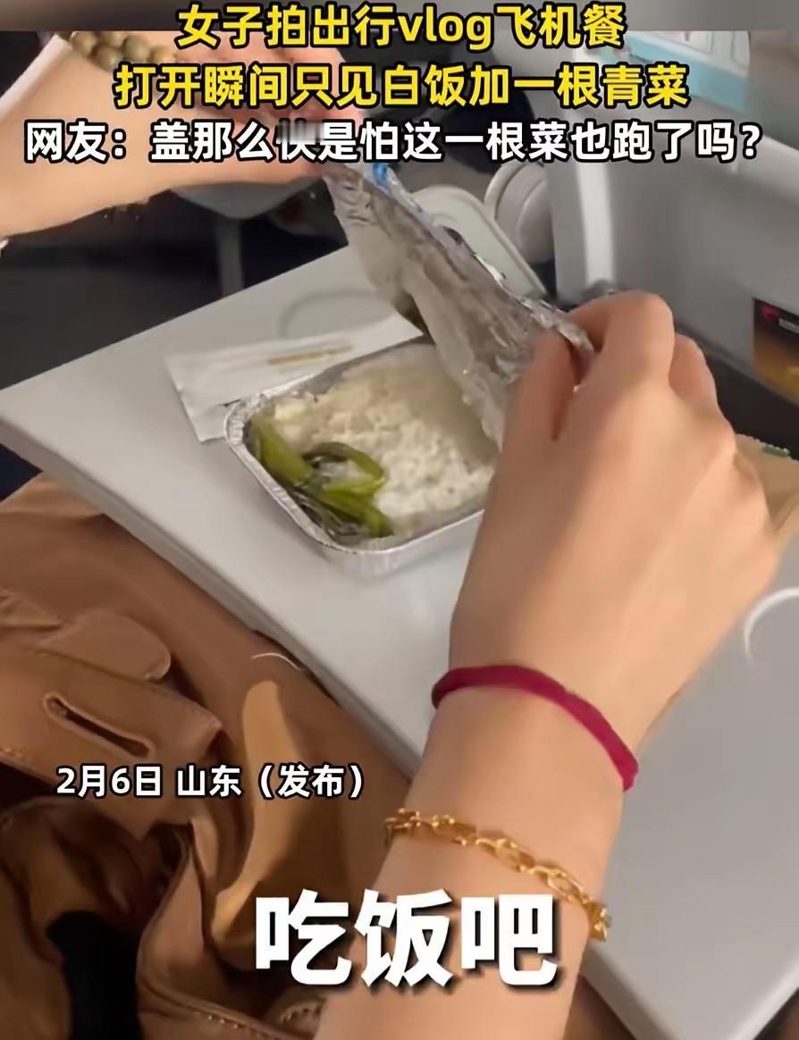 一根青菜掀翻飞机餐, 乘客拍了就后悔, 真相藏在盒盖底下。 那天刘女士拍的Vlog火了,就因为掀开饭盒的一秒——白米饭上孤零零躺了根青菜。 可她第二天自己发视频说,盒子是双格的,另一格里有豆腐和鸡蛋,镜头只拍了一半。 浙江长龙航空也回话了,说“一根青菜”真不是他们的标准,双头分装是常规操作,已查流程。 民航局有硬规定:起飞降落前后30分钟不能做不安全的事,送餐太复杂就容易出事。 雷雨天颠簸多,乘务员端盘子走路都得掂量,简化不是抠,是让大家都稳当点。 现在短途航班很多只送水,餐食变可选项,成本卡得细——冷链坏一箱、窄机身塞不下大餐车、五道质检不能少。 大家怀念十年前的飞机餐,那会儿票价高,航司倒贴也供,现在便宜票+自选服务才是主流。 可没人提前告诉你盒子怎么分、今天有啥,拍到啥就是啥,误会就从0.5秒开始了。
