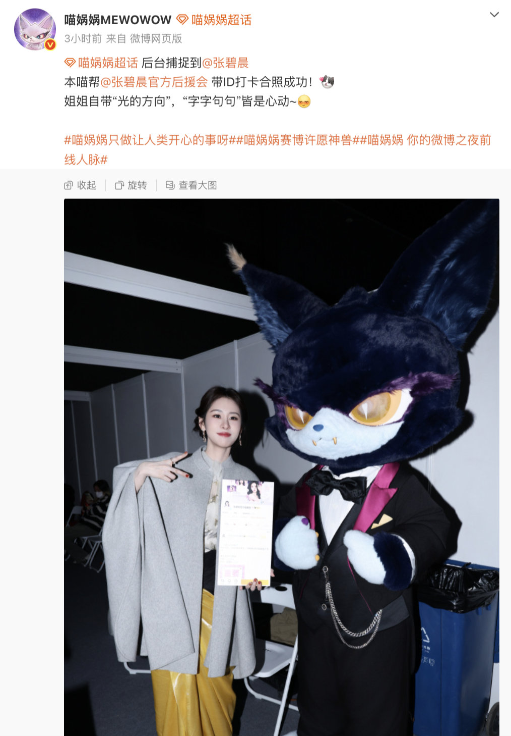 我的ID替我去了微博之夜 谁羡慕了?喵娲娲带着粉丝ID勇闯微博之夜后台,和艺人贴
