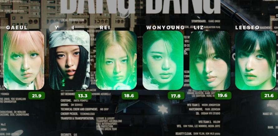 IVE新歌时长歌词分配:金秋天>李瑞>LIZ>直井怜>张元英>安宥真单人镜头时长分配:金秋天>张元英>李瑞>LIZ>直井怜>安宥真IVE新歌BANG BANG 张元英 镜头