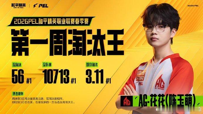 AG花花首周淘汰王 AG花花在春季赛首周拿到淘汰王,是对这段时间备战和赛场表现的