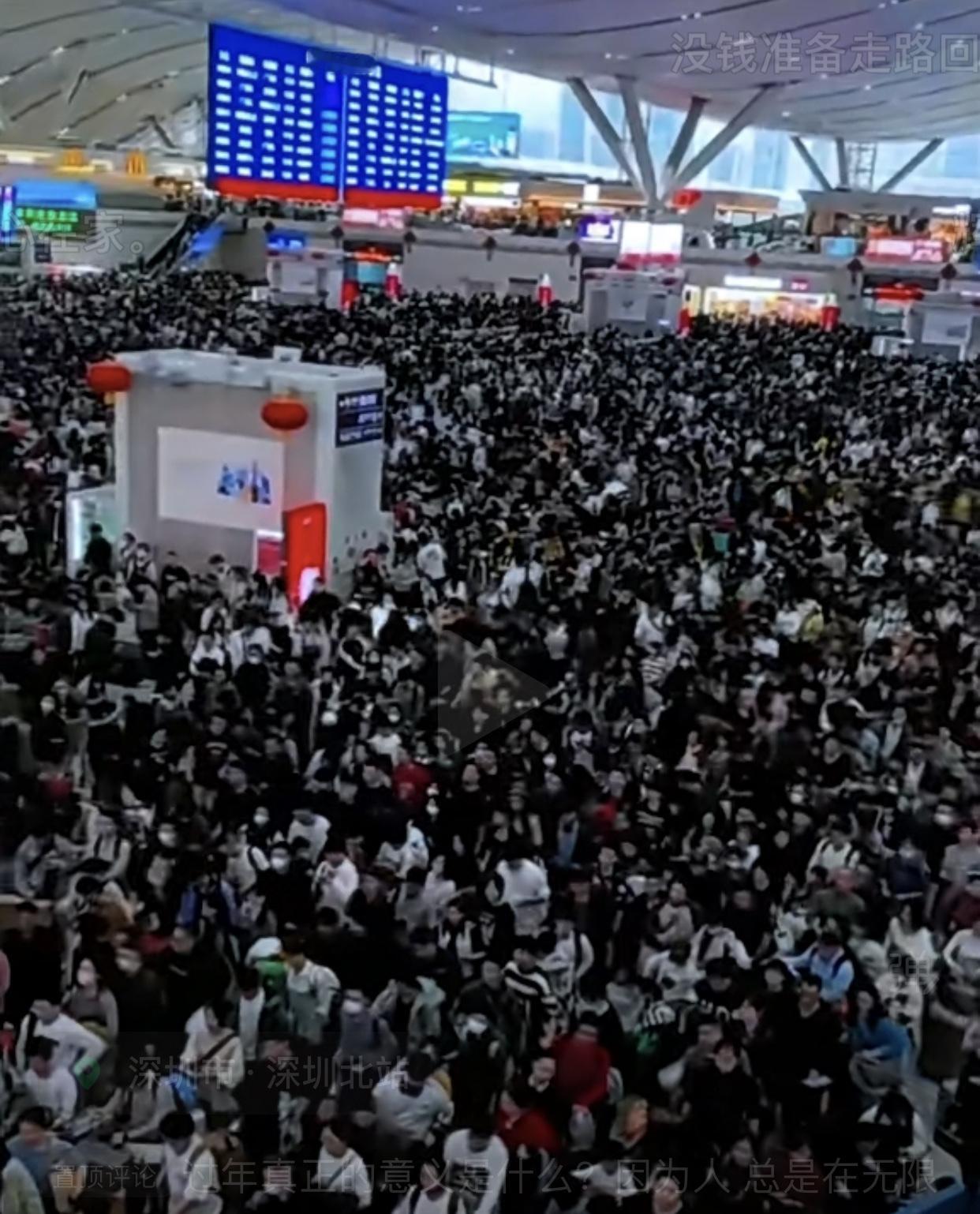 春运第8天,硕大的广州白云站就没少过人,深圳北站同是如此! 很多人都是提前返乡,可也不是你说走就能马上走,因为车票还不能随心所欲,还是要靠抢,因为大多数人都扎堆选择了这几天返乡回家。毕竟我们高铁选择的是电驱动,电驱动只能带那十几节车厢,如果是内燃机,它一下子可以带四五十节车厢,表面上有很多电驱动火车,实际上运力还是不够的。电驱动和内燃机,一个快一个慢,慢的肯定会被淘汰。 从绿皮火车,摩托车大军返乡大潮的春运,到今天飞机高铁自驾时代的春运,再也没有为了挤上火车在广场上冒着风雪等待的人山人海,也少了很多拖家带口背着小山一样行李的身影,谁都不能阻挡回家的路,所以白云站才建成这么大。出门在外不易,平安顺利到家就好。