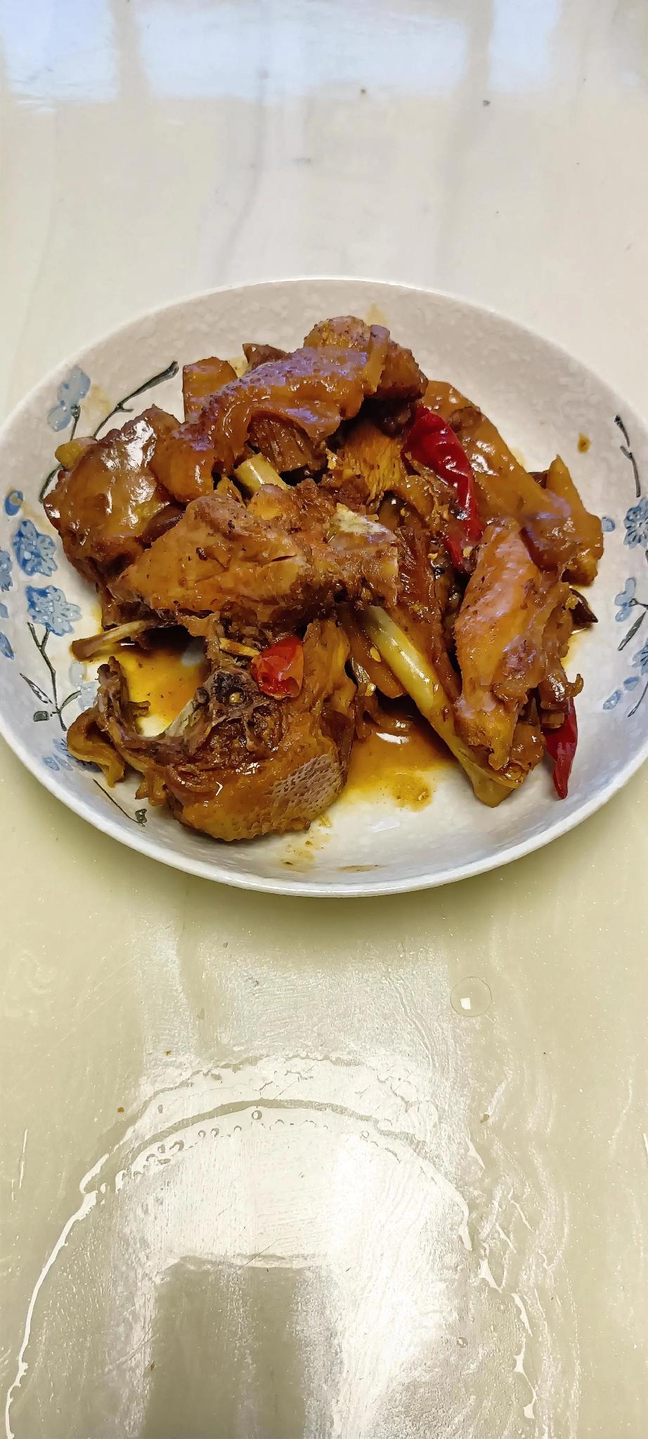 好友说看我的干锅鸡做得好像挺有食欲,让我上教程。 其实我也不知道好吃不好吃,但我家王爷嘴刁,他要是说好吃的东西,味道一定不错! 我也是天长日久摸索出来的,也没受过专业的培训,就是会做而已。 厨艺好的人,不要笑话我,这就等于在关公面前耍大刀呢! 先把鸡块清洗干净,水里放两片姜片和两个大料,焯水五分钟左右,我不用漏勺,都是用筷子往外夹,省得有浮沫。 热锅凉油,放一点点油就行,油热了以后下去葱姜蒜辣椒,炒香后放入少许酱油,放入鸡块煸炒,炒个三五分钟,放入清水,和鸡块持平就行。大火烧开,再改成小火慢炖,放少许白糖和料酒。快炖熟了的时候,再放入适量精盐。剩少许汤汁的时候,改成大火收汁,再放入少许味素,干锅鸡就可以出锅了。 反正我是一直这么做的,我就是做的家常饭菜还行,但不专业,家里也没有那么多的调料。 我家的调料不多,就有精盐、味素、白糖、料酒、耗油、十三香,其他啥都不用。 我比较愿意吃辣,做菜喜欢放辣椒。 刚才我又跟老公确认了一下,干锅鸡好吃不好吃? 他说绝对好吃!算是我的拿手菜!