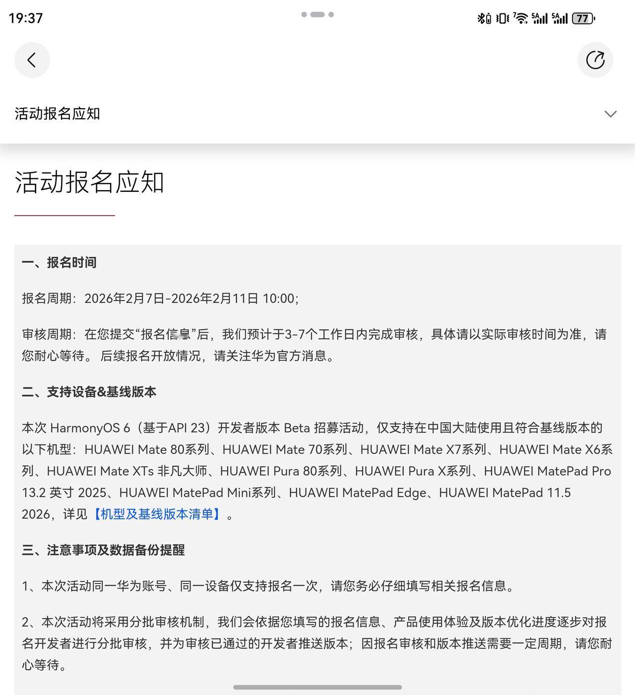 我也收到 HarmonyOS 6 迭代版本 HarmonyOS 6(基于 API 23)开发者版本的升级提醒了,更高效、更流畅、更便捷、更安全,足足 18GB 的大包,非常夸张,应该藏了不少好玩的新东西。[星星眼]
