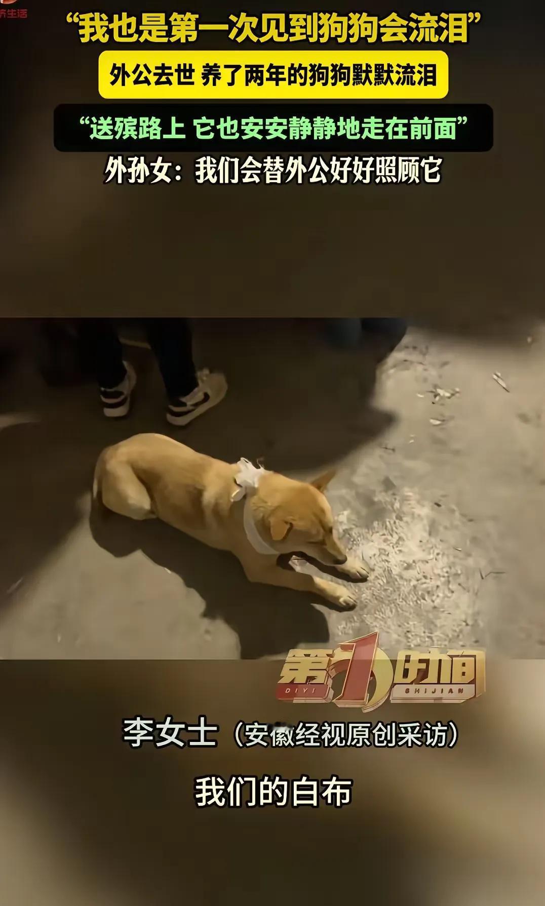 “太揪心了!”湖南永州,女子外公去世,守灵当天,狗狗守在外公旁边久久不肯离开,女子本来想把它拖走,走近一看突然愣住了:狗狗早就红了眼眶,几滴泪还从它眼角滑落,看上去眼里满是悲伤。女子于心不忍,破天荒的也给它带了一块白布,还动容的说:头一次见狗狗也会流眼泪。 这只黄狗是外公两年前从集市上抱回来的,当时它还只有巴掌大,怯生生地缩在竹筐里。外公说自己一个人在家闷得慌,有个活物陪着,日子也能热闹点。之后的日子里,这只狗就成了外公的“小尾巴”,清晨跟着外公去田埂上散步,傍晚蹲在门口等外公从菜地里回来,就连外公坐在门槛上抽旱烟,它也会把头搁在他的脚边,安安静静地陪着。 守灵这几天,家里人多又杂,大家都忙着操办后事,没人顾得上这只狗。可它就像认准了什么似的,一步不离地守在灵堂旁边,谁赶都赶不走。女子说,那天晚上她怕狗在灵堂里捣乱,想把它牵到院子里去,可刚走到它身边,就看见它眼角挂着亮晶晶的泪珠,连鼻头都在微微抽动,那模样比家里最伤心的晚辈还要让人鼻酸。 她一下子就软了心,想起外公生前总说这狗通人性,现在看来,它是真的懂离别。她找了块办丧事用的白布,轻轻系在狗的脖子上,就像给家里的晚辈披麻戴孝一样。旁边的长辈一开始还有些嘀咕,说哪有给狗戴白布的道理,可看着它那副悲伤的样子,也都叹了口气,没再多说什么。 送殡那天,队伍走得很慢,大家都沉浸在悲痛里。这只黄狗就安安静静地走在队伍最前面,脖子上的白布被风吹得轻轻晃动,它没有叫,也没有跑,只是一步一步地跟着,像是在给外公送行。有人说,动物哪懂什么生死离别,不过是凭着本能跟着熟悉的人走。可女子却不这么认为,她分明看到,在棺木下葬的时候,这只狗趴在土堆旁边,低低地呜咽了好久,直到天快黑了,才被家里人硬拉着回去。 在女子和家人心里,这只狗早就不是普通的宠物了,它是外公晚年最贴心的陪伴,是这个家里的一份子。他们说,以后会好好照顾它,就像替外公完成最后的心愿一样。 其实我们总说动物不懂感情,可很多时候,它们的忠诚和纯粹,反而比人类更直接。它们不会用语言表达悲伤,却会用陪伴和眼泪,告诉我们什么是不离不弃。那些说“不过是只畜生”的人,或许从来没有真正被一只动物全心全意地爱过,自然也不懂这种跨越物种的羁绊有多珍贵。 各位读者你们怎么看?欢迎在评论区讨论。