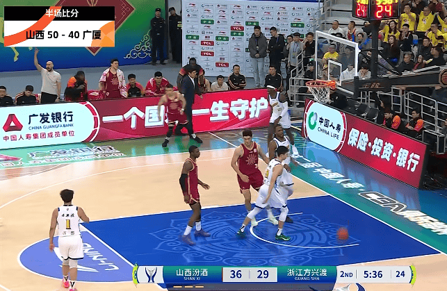 第二节比赛结束,山西50-40领先广厦。