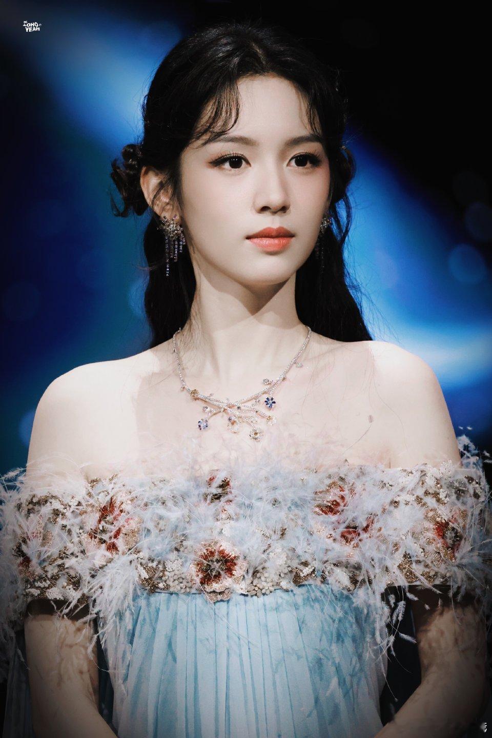 周也神女造型太绝啦~ 蓝色羽毛裙灵动飘逸🌿,好适合蓝色的也子