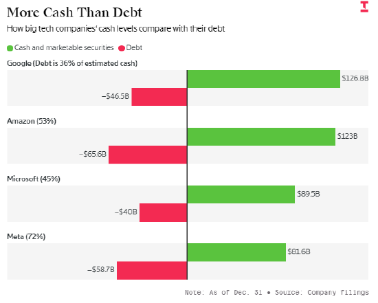 好消息是,这些科技巨头均具备进一步举债数千亿美元的能力,远超其当前的负债规模。