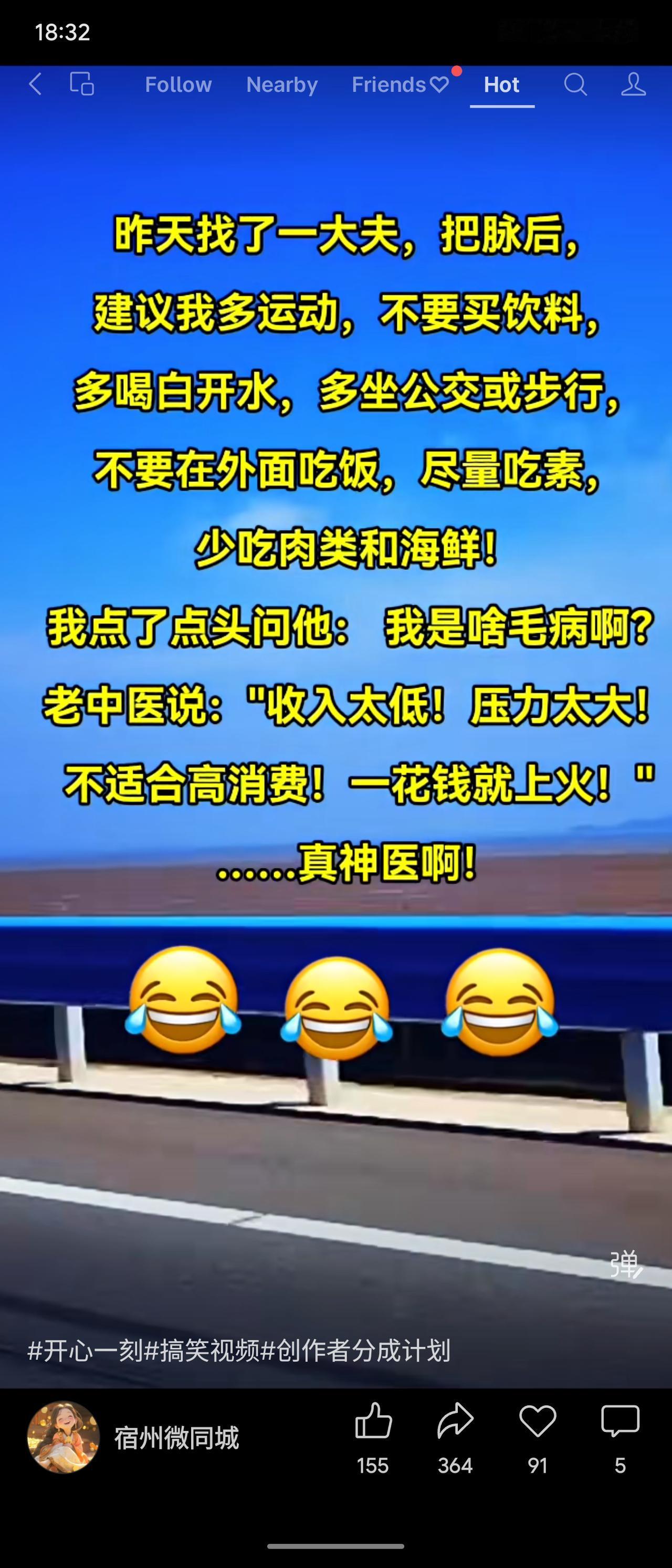 一患者求诊,老中医建议其多运动、喝白开水、少消费等。追问病因时,医生幽默点破:“收入太低,压力太大,不适合高消费。”段子以调侃方式揭示了经济压力对生活方式的深刻影响。