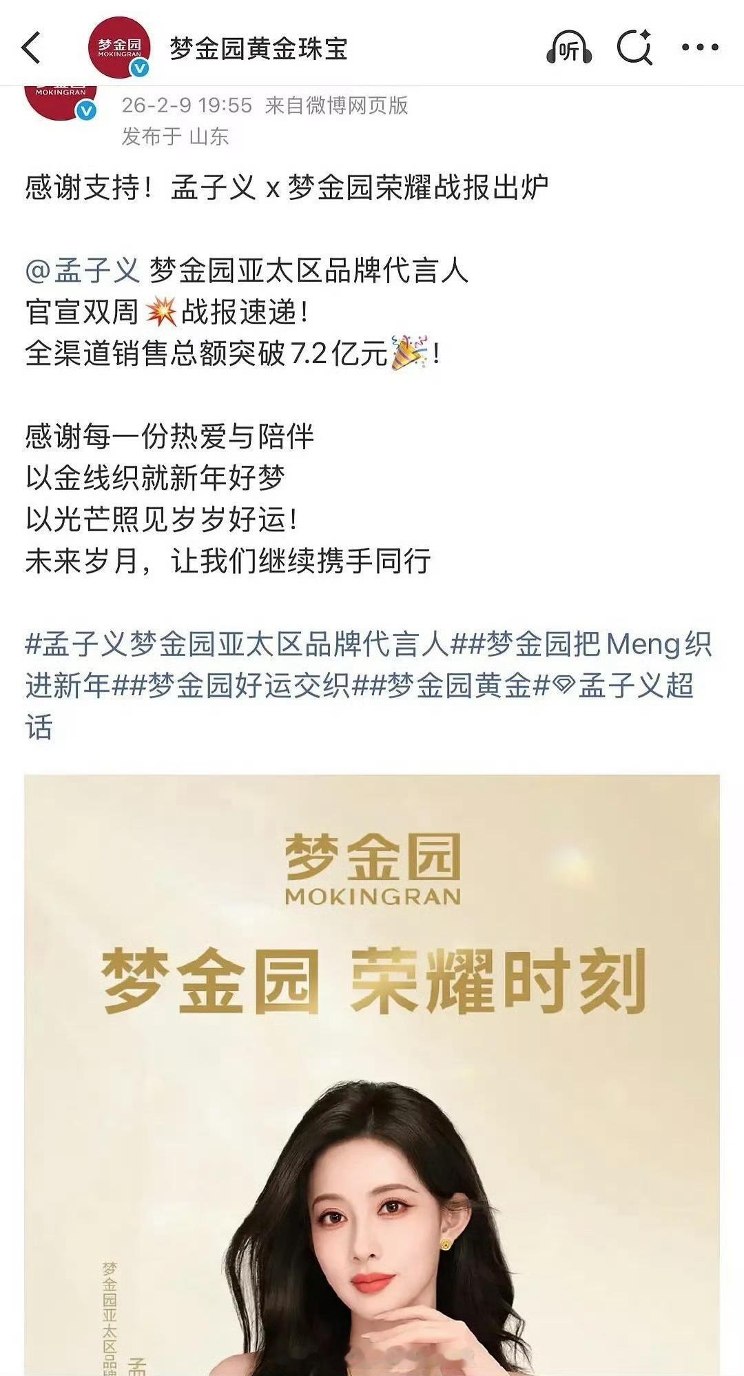 孟子义黄金代言战报7.2亿被审判,说不是同款的不能算