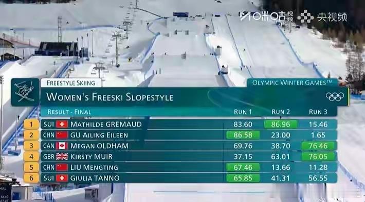 谷爱凌第一跳后哭了 仅差0.38分!格雷莫德86.96分卫冕,谷爱凌86.58分获得银牌🎉🎉🎉