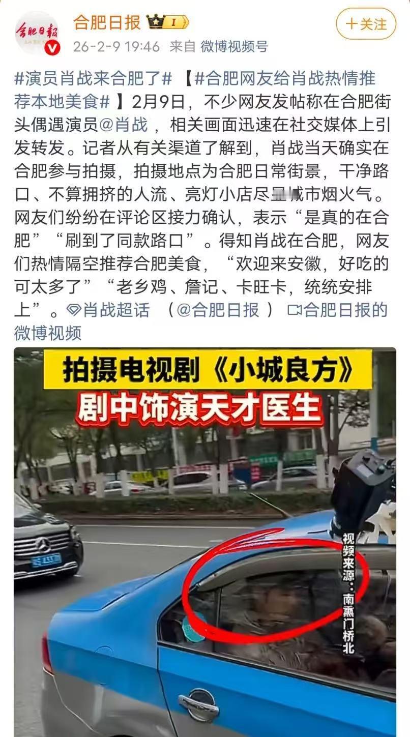 肖战上了合肥日报! 合肥日报是这样介绍的:“肖战的确来合肥了,干净路口、不算拥挤的人流、亮灯小店尽显城市烟火气”[捂脸][捂脸]合肥日报是没有看到到处是乌泱泱的人群吗?有人还爬墙,明明人多到比大年初一还多[捂脸][捂脸] 估计肖战再待多两天,就能把合肥带火,他拍戏的那个地方肯定成为打卡点。不得不说肖战的人缘实在是太高了,他的信念感也很强👍,那么多人围堵围观的,也丝毫不影响他坐在出租车里拍完戏。只能说我们战战是见习惯了,辛苦了