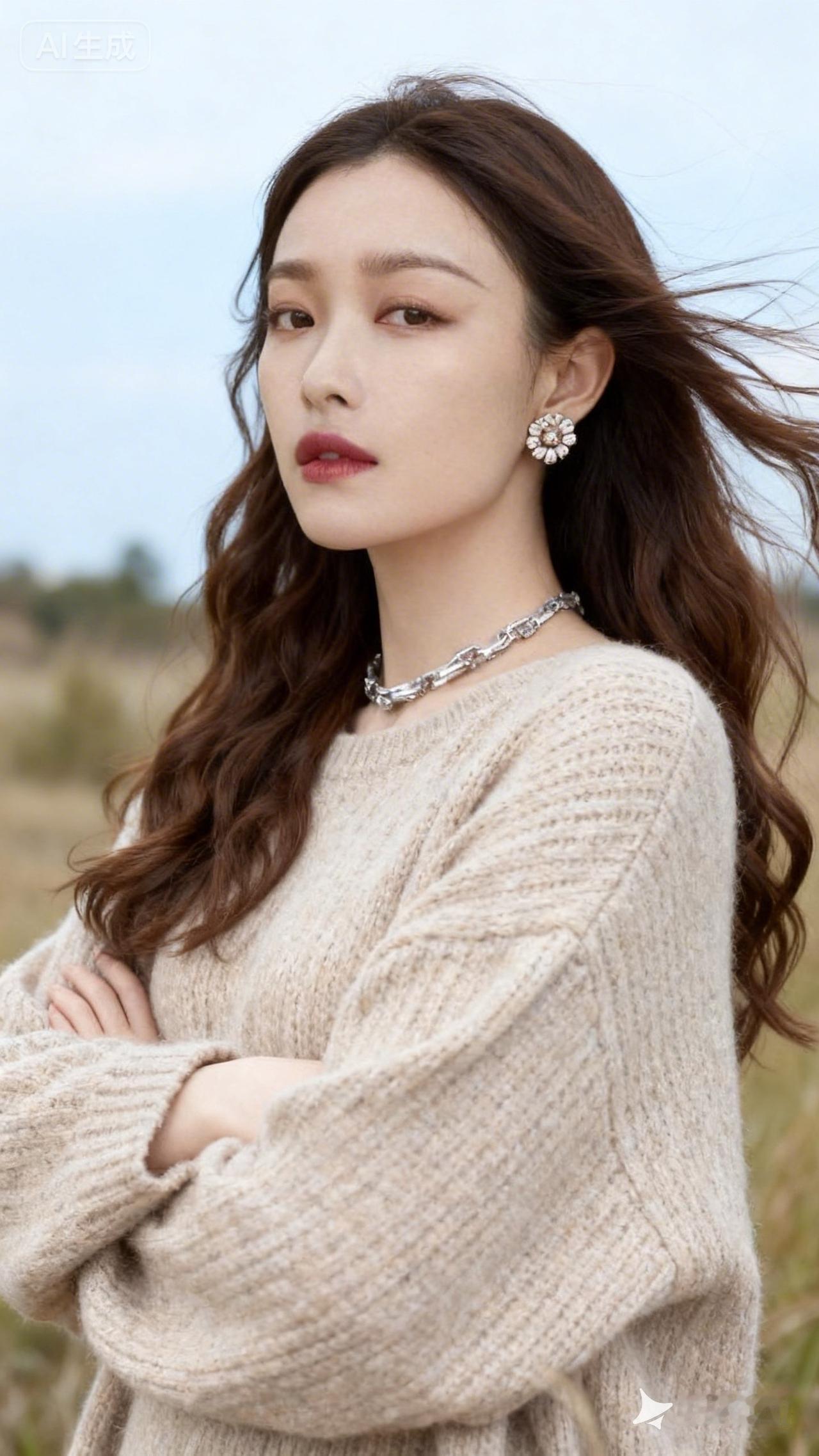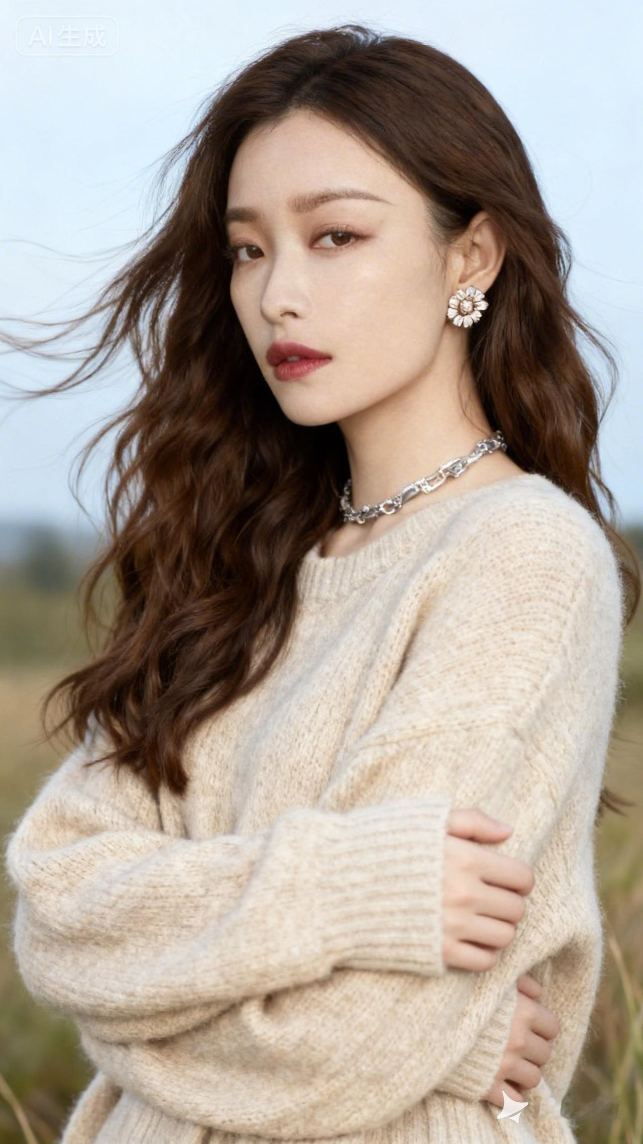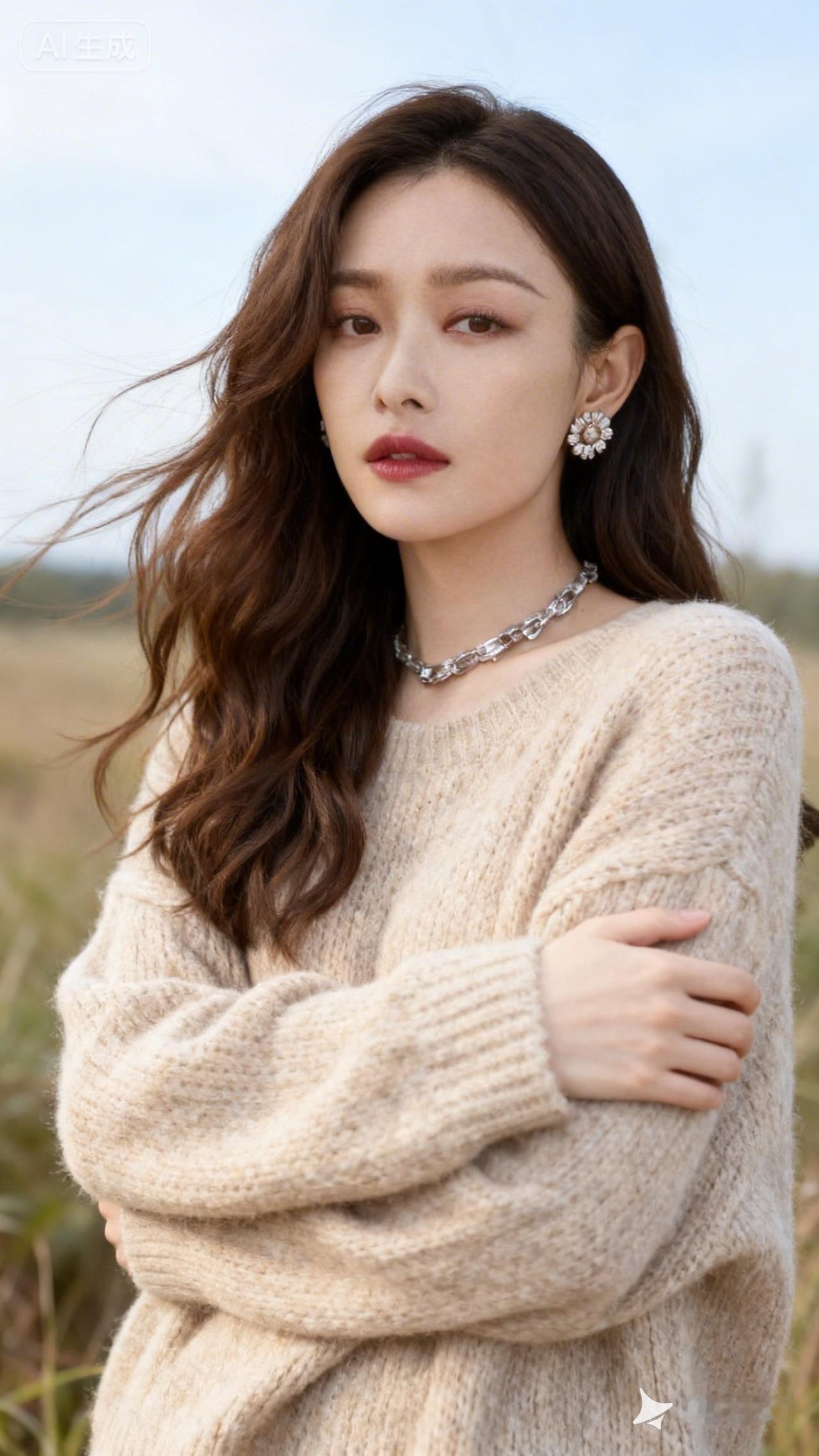 温柔冬日穿搭,米色毛衣+珍珠耳环,尽显优雅气质