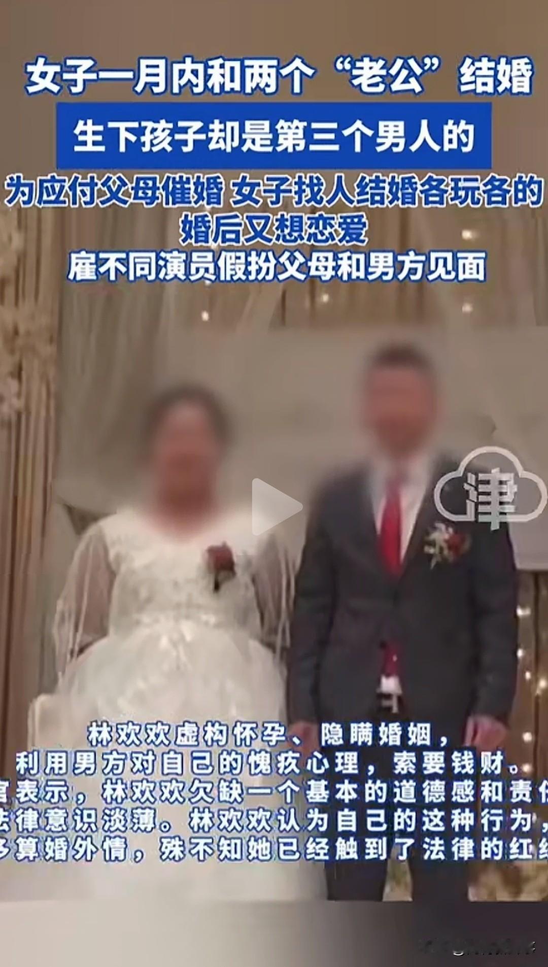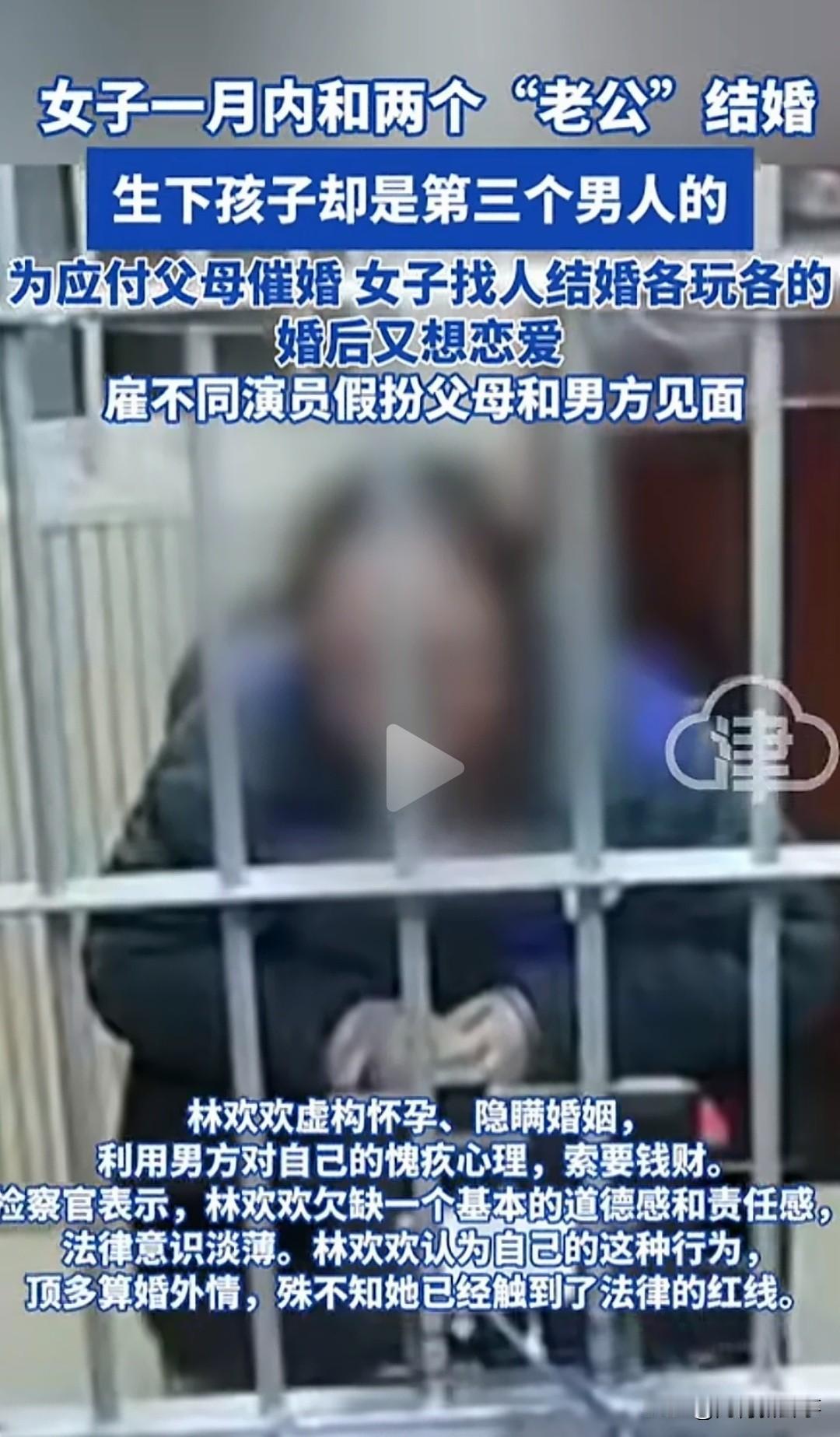上海女子1个月结2次婚!三重骗局惊呆全网,竟还生了别人的孩子🔥 上海女子林某的婚恋骗局彻底曝光!2021年她竟在1个月内接连和两名男子办婚礼,收彩礼、骗钱财,殊不知她早已和第三人领证结婚,孩子生父更是另有其人,如今因诈骗罪被逮捕,涉案细节让人咋舌! ✅ 雇群演扮父母,见不同男方换不同演员,3000元演一场亲情戏 ✅ 虚构怀孕拿假产检单,流产后隐瞒真相,用别人孩子冒充亲生 ✅ 谎称失信人员拒领证,游走两男之间敛财,还辩称只是婚外情 检察官明确:隐瞒已婚事实、虚构理由骗取财物,已触碰法律红线,绝非单纯的道德问题! 这起事件也给所有人敲响警钟,婚恋中切莫盲目信任,核实身份、守住钱财底线太重要! 你觉得婚恋中最该警惕哪些骗局?评论区聊聊你的避坑妙招⬇️