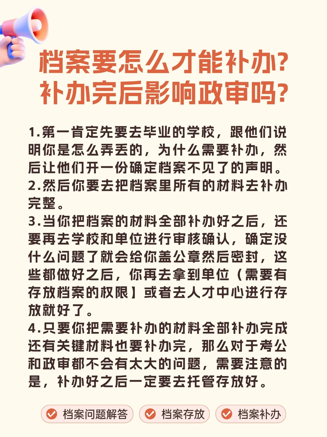 档案要怎么才能补办?[萌萌哒R]补办完后影响政审吗?