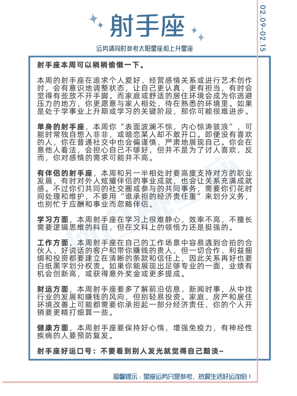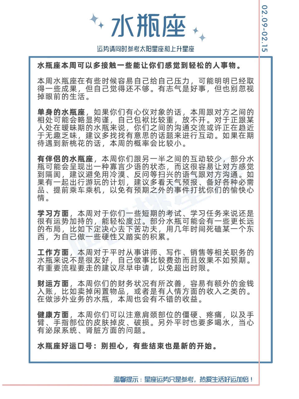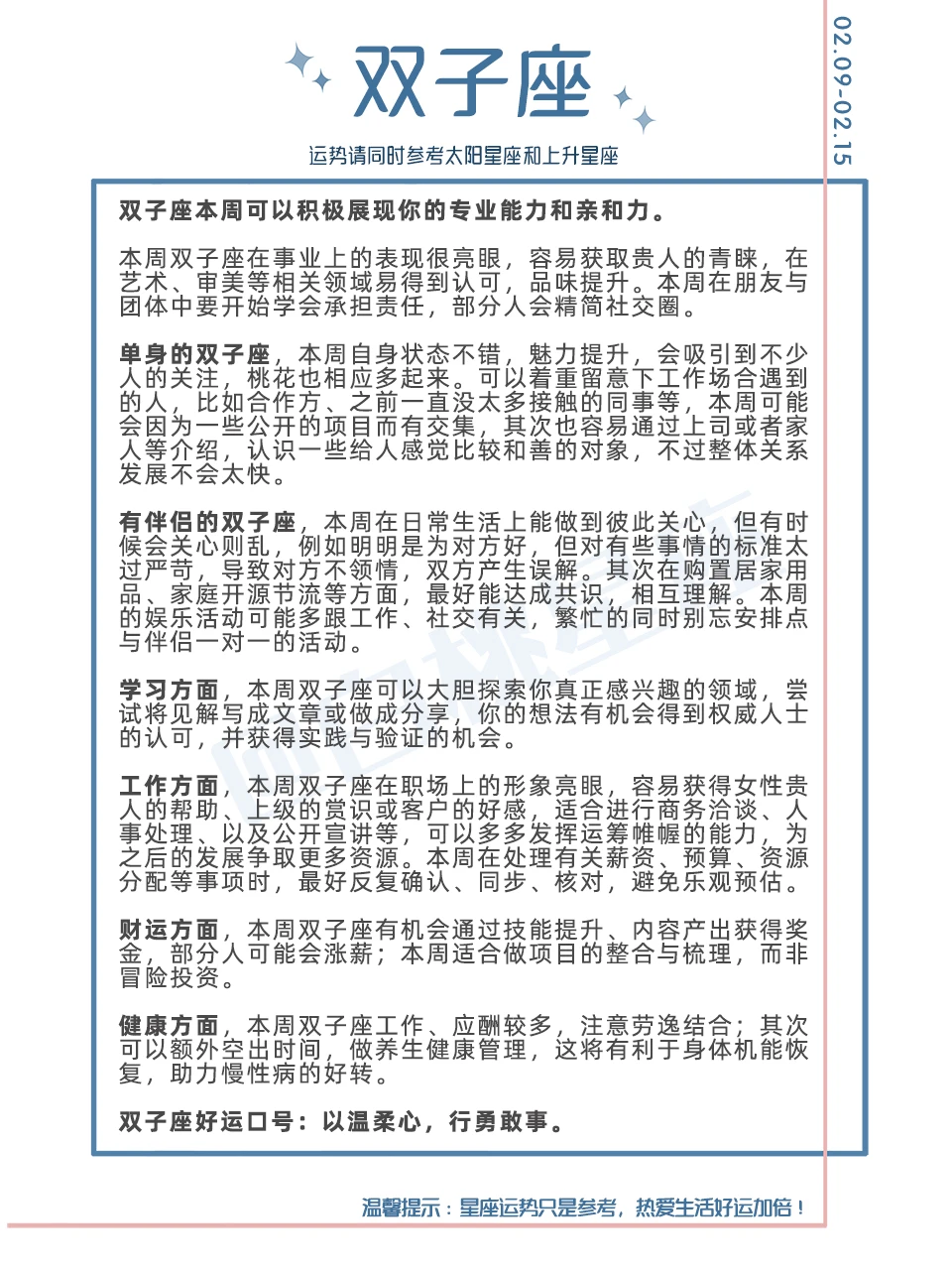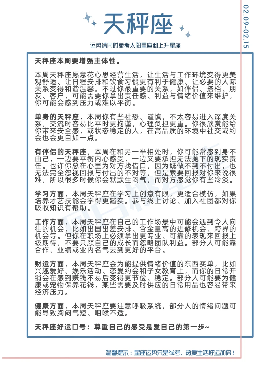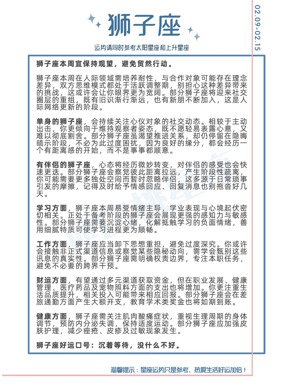温馨提示:星座运势只是参考,热爱生活好运加倍!