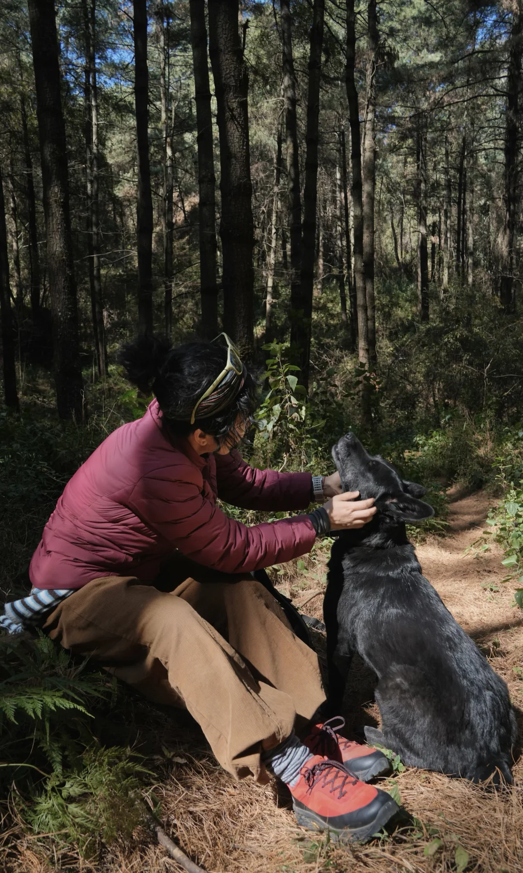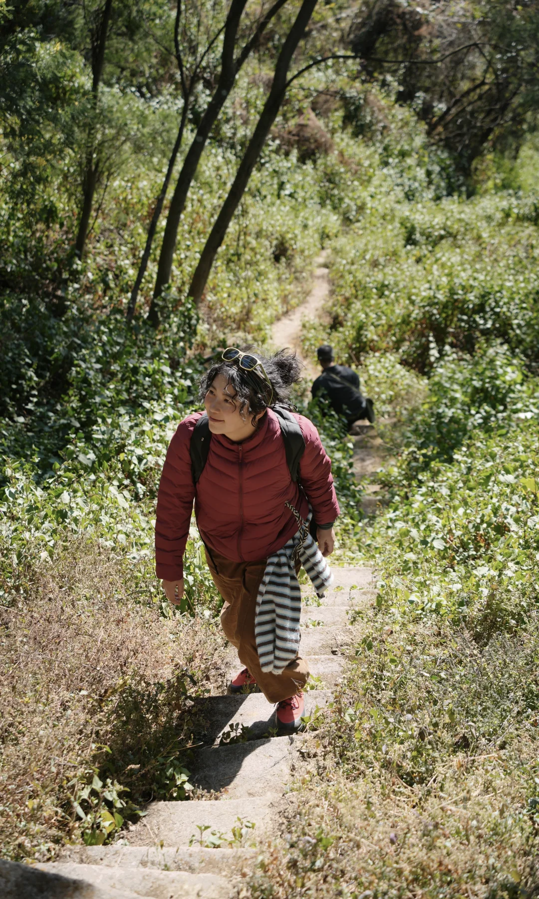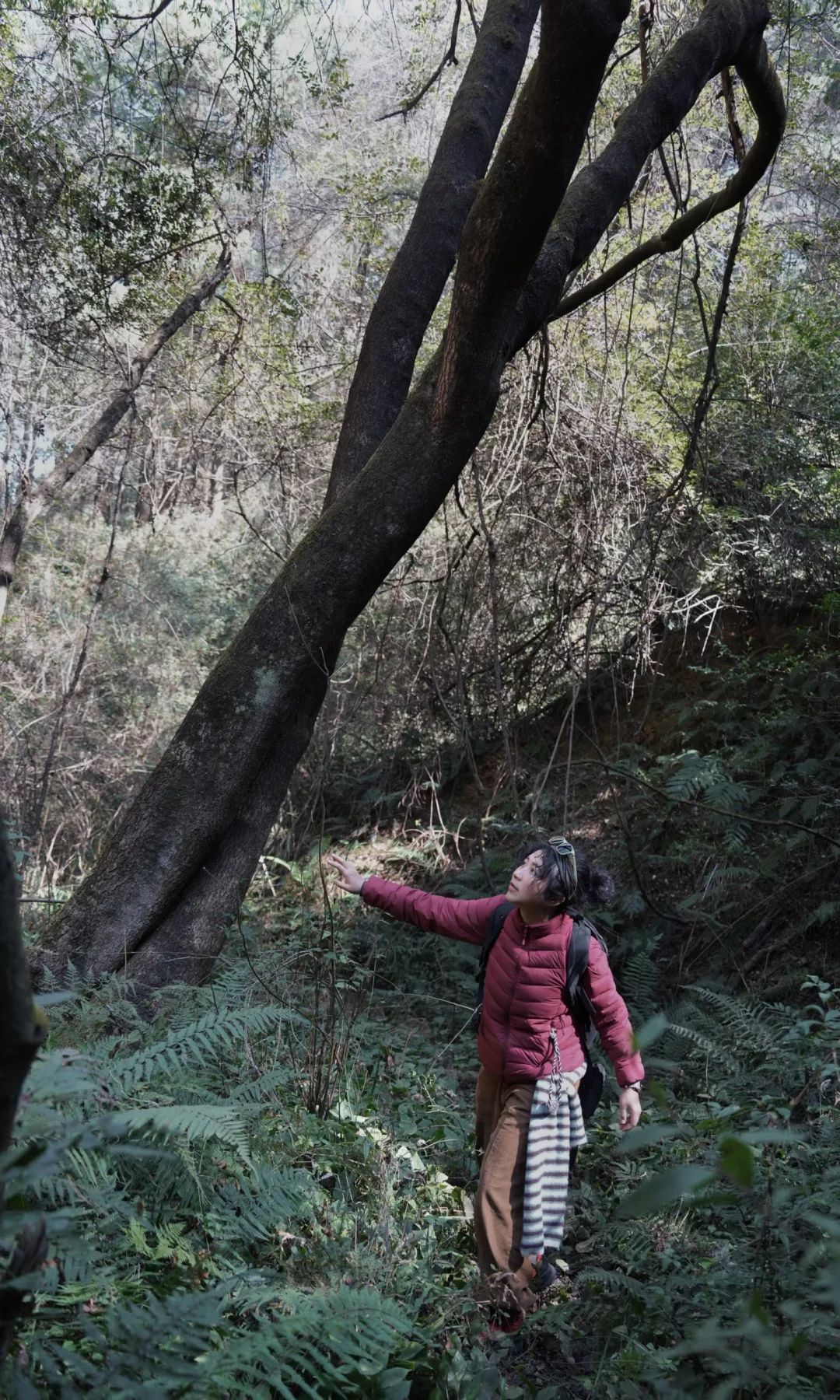 3️⃣路况装备:顶着大太阳,一开始就从山的阳面直接生拔上去,45度坡路面崎岖碎石好多,探索未知路段我穿了 拓陆徒步鞋,NAVIC FIT中足锁定科技给予脚面强有力的包裹和支撑;部分背阴森林树木茂盛挡住阳光,山沟草老高了,一瞬间像到了西双版纳,OMNI-MAX鞋底复合科技,保障了长距离徒步的舒适度和回弹,鞋底凹槽能有效排泥,增强行走推进力,轻松走过复杂地面;有时候走过水泥地水坑还有OUTDRY防水科技的防护,从山谷爬上去的一条沟几乎手脚并用了,多亏鞋子的VIBRAM MEGAGRIP复合材料大底稳稳抓地力,鞋底纹路多向分布,抓地力真的绝了,一点不崴脚,每一步都走得很扎实,走湿滑硬核地形穿它真的很顶很省心