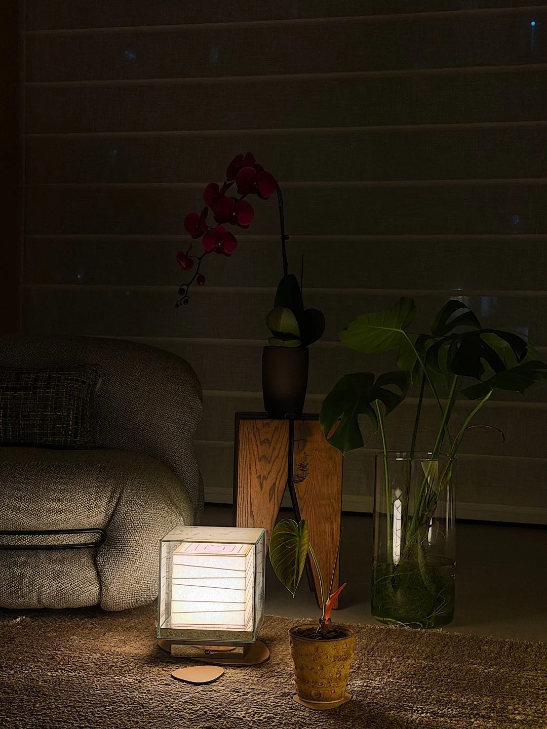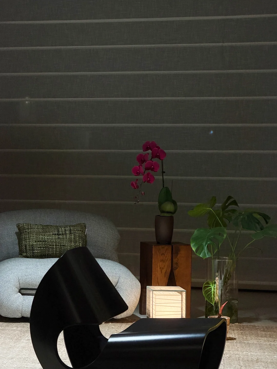 软装是我自己挑的,在一些软装的选择上,后期我刻意用更为柔美的线条、更柔和的颜色来呈现家应有的温润气质。也基于此,每当入夜后,我家的氛围感总是很棒。