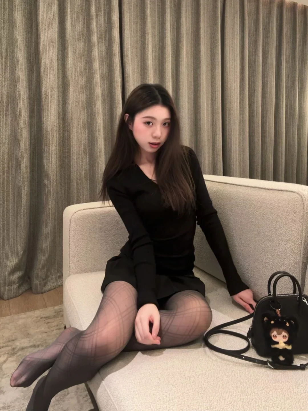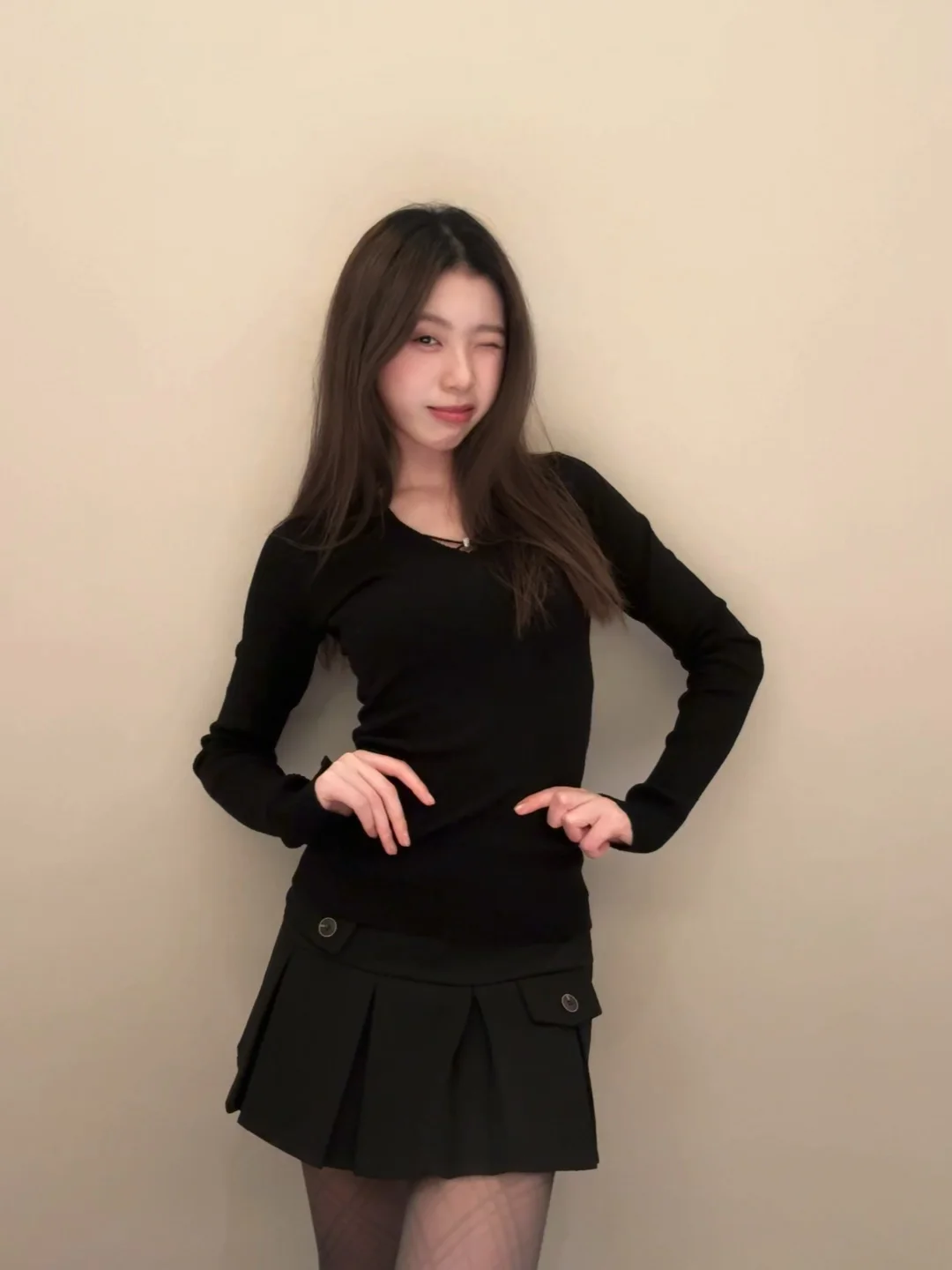 黑色系真的太显气质了! 针织衫+百褶裙+格纹黑丝, 轻松拿捏秋冬甜酷氛围感 🖤