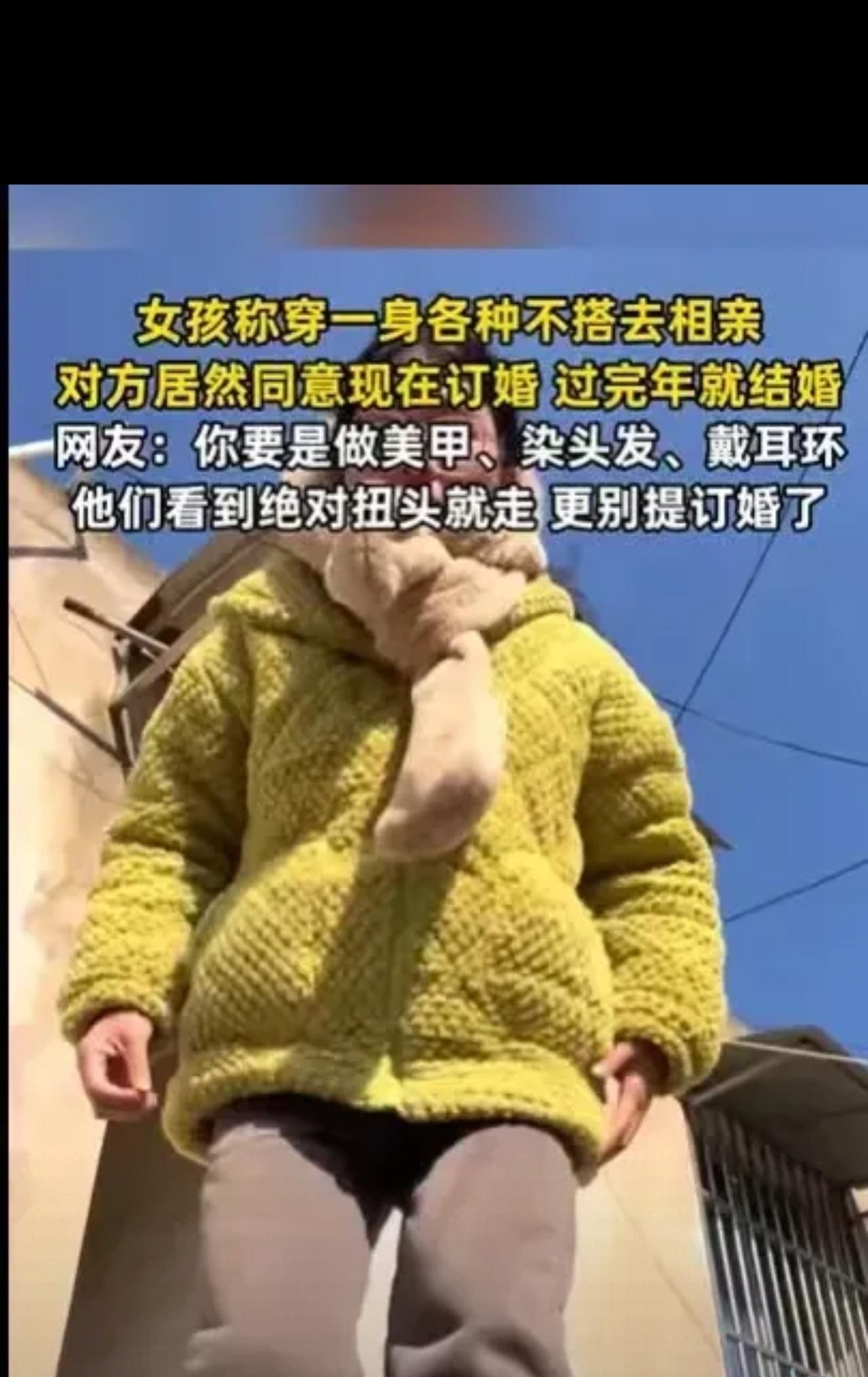 安徽,一个长相平平的女子,不想相亲,她就穿得非常土气,去相亲了,结果和她相亲的男子,居然同意马上订婚,并且过完年就结婚。女子感慨,有些男的真的是饿了。但网友们纷纷说,他们不是饿了,他们是太聪明了。 被父母催婚逼到绝境,能有多离谱? 安徽一位姑娘,为了躲开家里安排的相亲,直接把自己往“土气里造”,素面朝天、旧棉衣裹身,连头发都懒得好好梳,本想着一丑退所有,让男方主动打退堂鼓。 结果剧情直接大反转——相亲男不仅没嫌弃,反而一眼相中,当场敲定:马上订婚,过完年就结婚! 姑娘当场懵圈,回家忍不住吐槽:现在有些男的,是真不挑啊,简直是饥不择食! 可网友的评论,却直接点醒了她:这哪是不挑,分明是精到了骨子里! 姑娘本身长相普通,皮肤偏黑,本就属于丢进人群找不到的类型。为了彻底劝退相亲对象,她更是下了“狠手”: 脸上一点妆不化,素得毫无气色;头发随便往后一扎,乱糟糟毫无造型;戴上一副又大又厚的老式眼镜,土气直接拉满;身上套着压箱底的黄绿色厚棉衣,臃肿又老旧,把自己裹得像个圆粽子;再配一条颜色违和的卡其棉裤、一条幼稚的旧围巾,全身上下没有一处不透着“敷衍”。 她对着镜子照了又照,满意得不行:就这造型,谁见了都得绕道走,这次相亲铁定黄,以后再也没人能逼我见面了! 可万万没想到,见到男方的那一刻,所有预想全都落空。 男生看着她这副土气模样,非但没有皱眉反感,反而眼前一亮,全程热情主动,从兴趣爱好问到工作日常,恨不得把她的底细全摸清楚,眼神里全是藏不住的满意。 更让她大跌眼镜的是,相亲刚结束,男生就直接跟媒人表态:太合适了,立刻订婚,过完年立马办婚礼! 姑娘彻底傻了:我都扮成这样了,你到底看上我啥了? 回家路上她越想越不解,只觉得对方是“急着结婚、完全不挑”,可把这事发到网上,网友的留言却扎心又真实: ❶ @人间清醒阿凯:根本不是饿,是太精明!现在男生相亲都看透了,打扮越精致、越爱美的女生,越费钱越难伺候,反而这种素面朝天、穿得朴素的,才是踏实顾家、会过日子的,娶回家省心又省钱! ❷ @小桃不逃:太真实了!我相亲也故意扮丑,男方追着要微信,说就喜欢不做作、接地气的,那些化妆美甲穿名牌的,他直言养不起也不敢娶! ❸ @晚风说:男生选老婆,从来不是选最美的,是选最“好用”的,不物质、能吃苦、好拿捏,这不是清醒,是现实到自私! ❹ @安安妈:姑娘别自我怀疑了,他不是看上你,是看上你这身“土气”背后的低成本、高省心罢了! 看完这些评论,姑娘瞬间恍然大悟,原来自己的刻意扮丑,反倒成了对方眼里“适合结婚”的加分项。 其实我特别想说,现在的相亲市场,早就变了味。 很多人不再看三观、看真心,而是把婚姻当成一场精打细算的交易:男生怕娶到物质娇气的,就专挑朴素低调的;女生怕遇不到真心的,就故意扮丑试探。 可婚姻从来不是靠外表土不土、省不省钱来衡量的,一个人是否顾家、是否靠谱,也从来不是一件旧棉衣、一副旧眼镜能定义的。 更想提醒所有被催婚的人:别为了应付父母委屈自己!《民法典》早有规定,结婚必须男女双方完全自愿,禁止任何组织和个人干涉。不想相亲、不想将就,完全可以大胆拒绝,没必要靠扮丑逃避,更别嫁给一个只图你“省心省钱”的人。 毕竟,婚姻是过一辈子,不是凑活一阵子。 最后想问大家:你觉得男生偏爱朴素女生,是真清醒,还是太现实?换作你,会为了逃相亲故意扮丑吗?