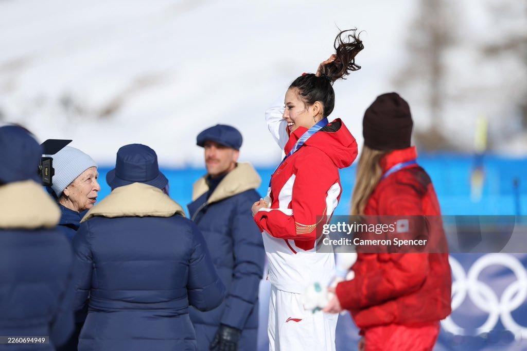 英国王室 🇬🇧2月9日,安妮长公主为自由式滑雪女子坡面障碍技巧决赛的银牌🥈获得者🇨🇳选手谷爱凌颁奖。世界各国王室2026年米兰科尔蒂纳冬奥会谷爱凌坡面障碍技巧决赛 谷爱凌决赛
