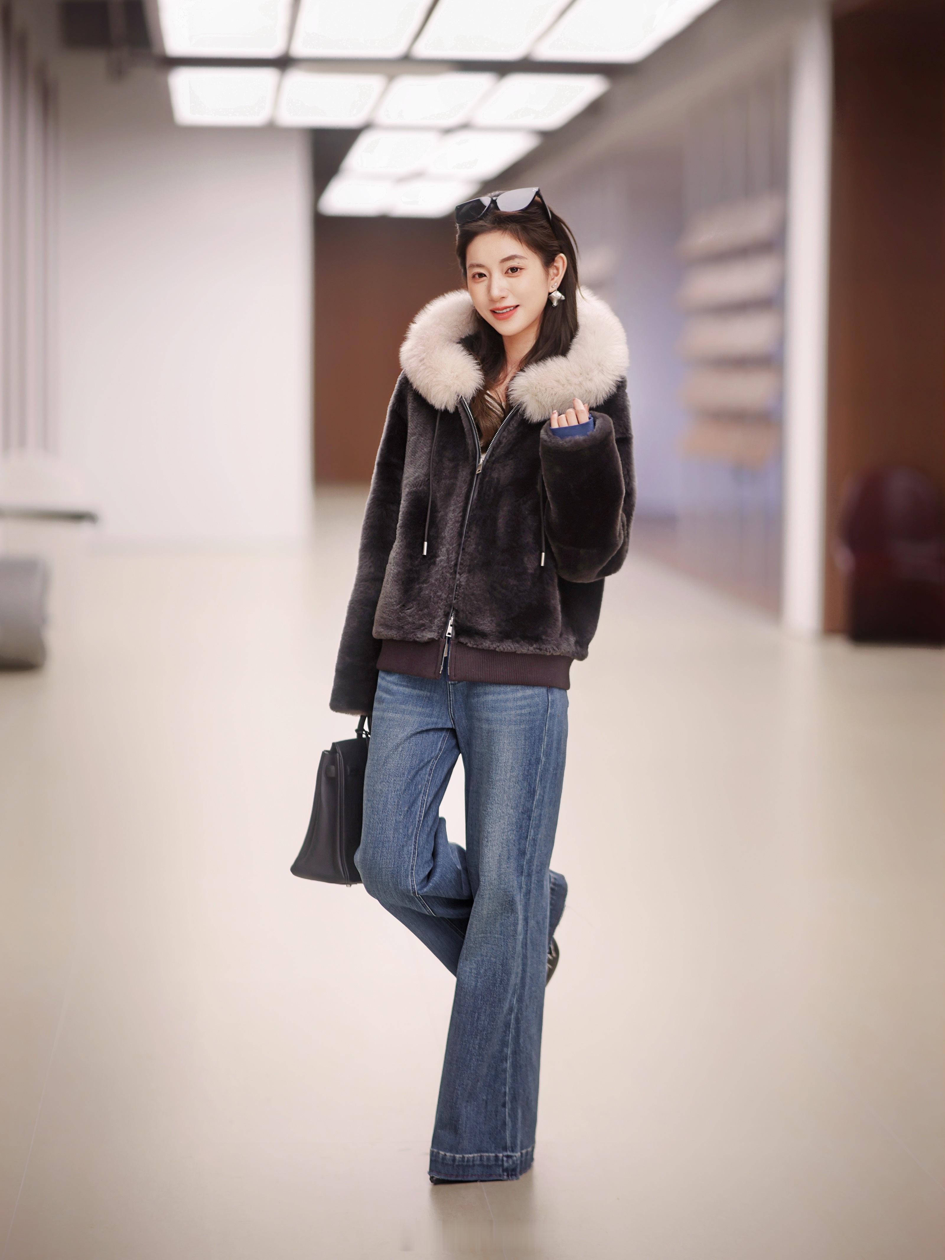 那种清冷高阶贵气又松弛feel!不就是这套吗?西班牙进口羊皮毛一体+芬兰狐狸毛领