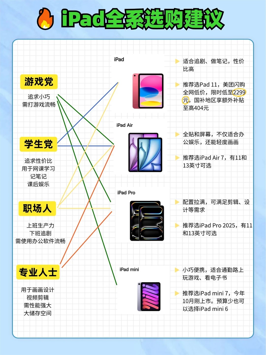 iPad很适合过年的时候看春晚、追剧、打游戏。很多宝子纠结iPad各系列怎么选,其实不用盲目追高配置,按需求选才不浪费!
