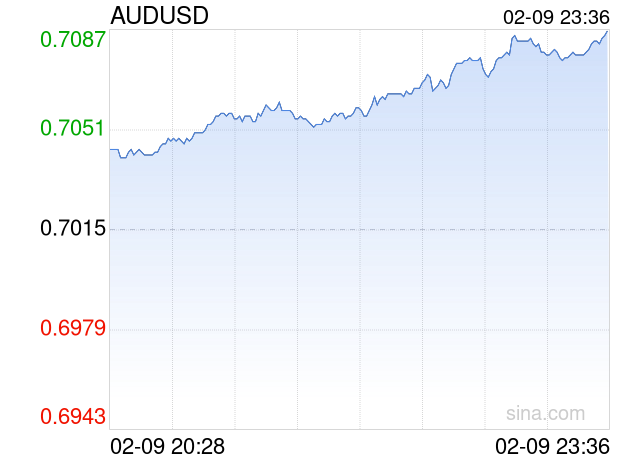 新浪外汇消息2026年02月09日,截至23时36分,外汇市场上澳元兑美元汇率突破1澳元兑换0.7086美元。涨幅为1.0121%