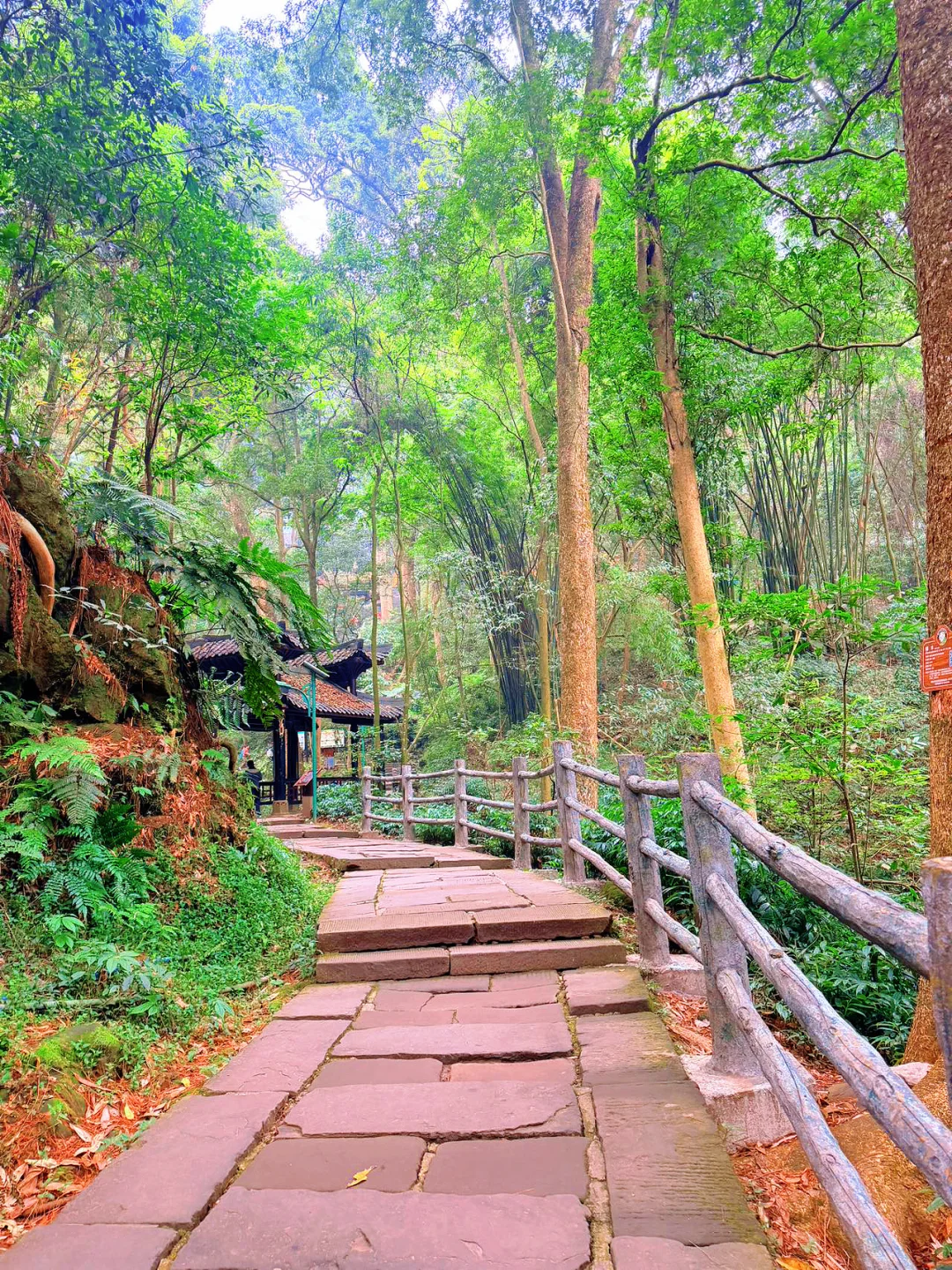 蜿蜒起伏的幽静步道,古刹隐于林间~
