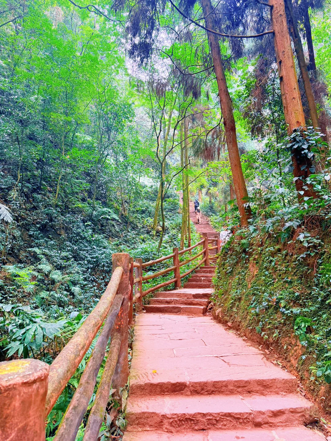 以石板路和台阶为主,整体友好。从雷音寺到纯阳殿有约300米海拔爬升