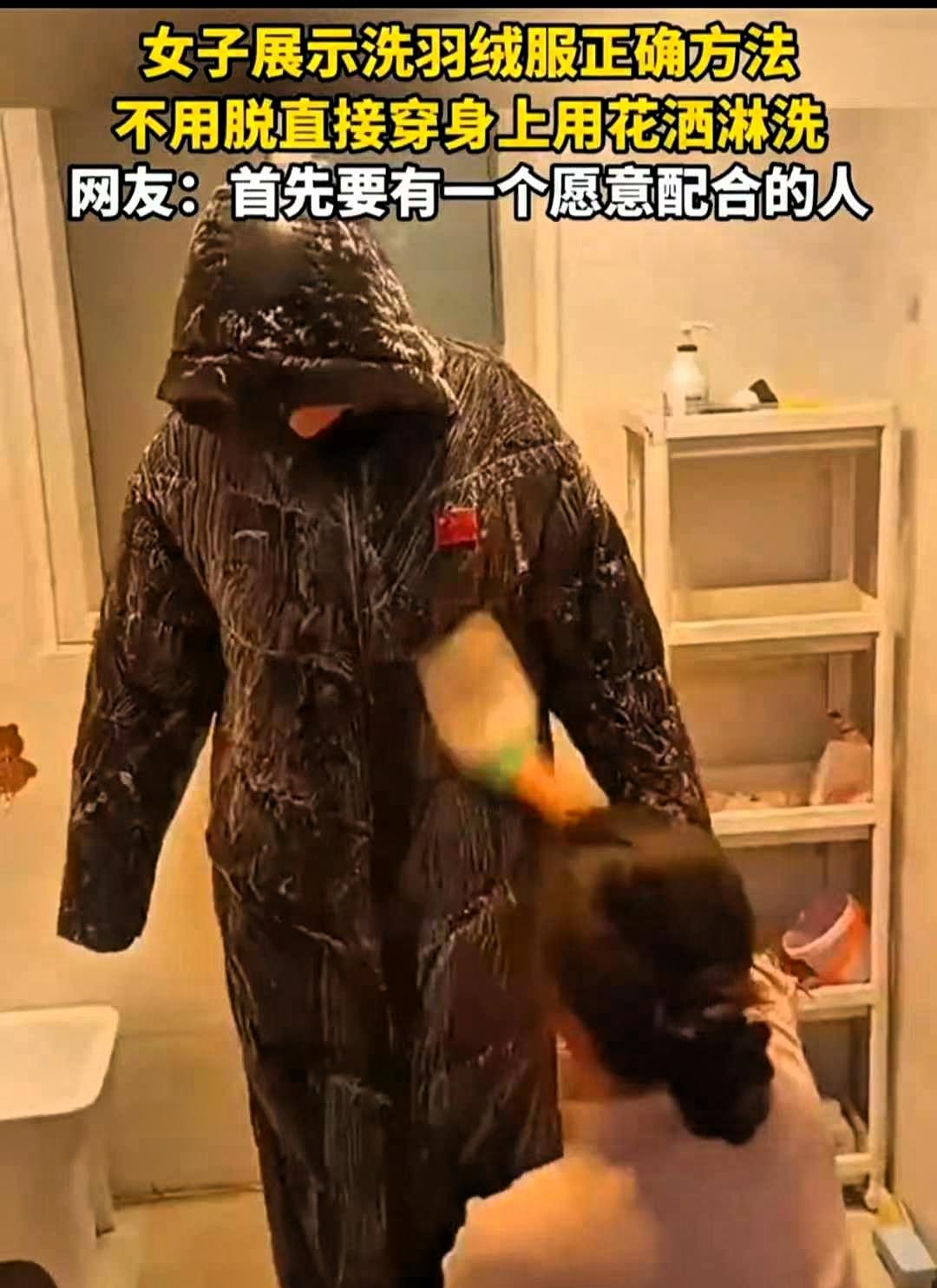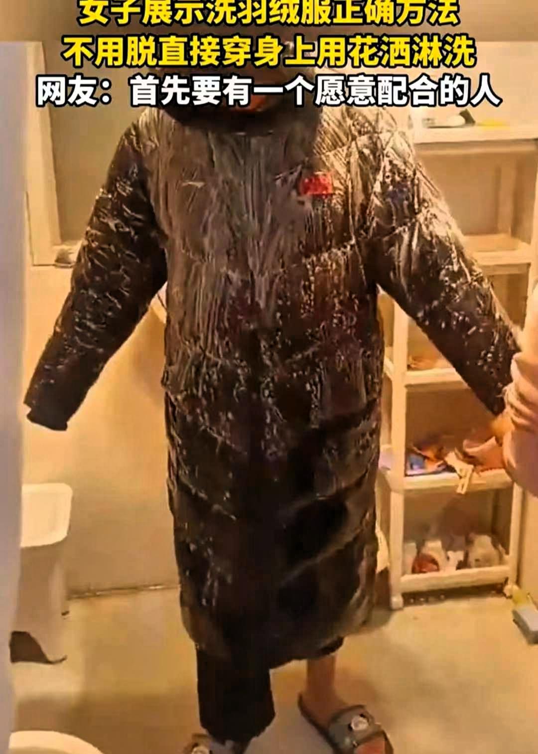 河南,女子过年想把儿子的羽绒服洗一下,洗衣机怕洗坏了,手洗又洗不动,然后灵机一动,便让孩子穿着羽绒服,用洗澡的花洒边冲边清洗,只想让孩子干干净净过年。 这件小事在网上引来很多讨论,有人觉得方法巧妙,也有人觉得不够稳妥,其实都是普通人打理日常衣物的真实写照。 这位妈妈的出发点特别实在,就是想把衣服洗干净、不伤衣服、也不让自己太累,这份细心和用心,相信很多家长都能理解。过年讲究整洁清爽,给孩子把衣服打理得干干净净,也是一份朴素的心意。 不过从实际使用和保养角度来说,穿着羽绒服直接用花洒冲洗,并不太推荐。羽绒服的面料多有防水涂层,外部冲水很难把内部洗涤剂彻底冲净,残留久了容易让羽绒结块、失去蓬松度,保暖性也会下降。另外,孩子穿着湿冷的羽绒服,也容易受凉,看似省事,其实存在不少隐患。 其实正确清洗羽绒服并不复杂,记住几个简单原则就足够实用。日常轻微脏污,优先局部处理,用温和的洗涤剂在领口、袖口等位置轻轻刷洗,不必整件下水。需要整件清洗时,用温水轻柔按压去污,不要用力揉搓、更不要拧绞,洗完用毛巾吸干水分,放在通风处阴干,中途多拍打几次,羽绒就能恢复蓬松。 如果选择机洗,只要拉好拉链、扣好粘扣、套上洗衣袋,使用轻柔或羽绒服专用模式,正常洗涤也不容易损坏衣服。很多人羽绒服洗坏、洗塌,大多是方法不当,并不是衣服本身娇贵。 生活里的小技巧,实用、安全、不伤物、不伤人,才是最靠谱的。用心打理生活值得肯定,但选对方式,既能省心,又能保护衣物、照顾好家人,才是更稳妥的生活智慧。 你平时洗羽绒服有什么好用又稳妥的小方法?