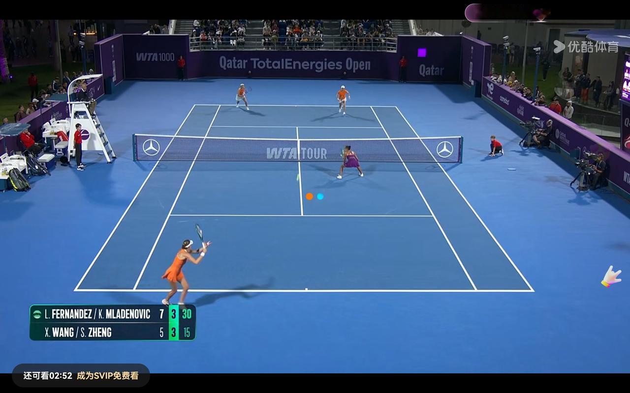 正在直播网球多哈站比赛,王欣瑜/郑赛赛出战,目前第一盘输球,第二盘双方3-3平。