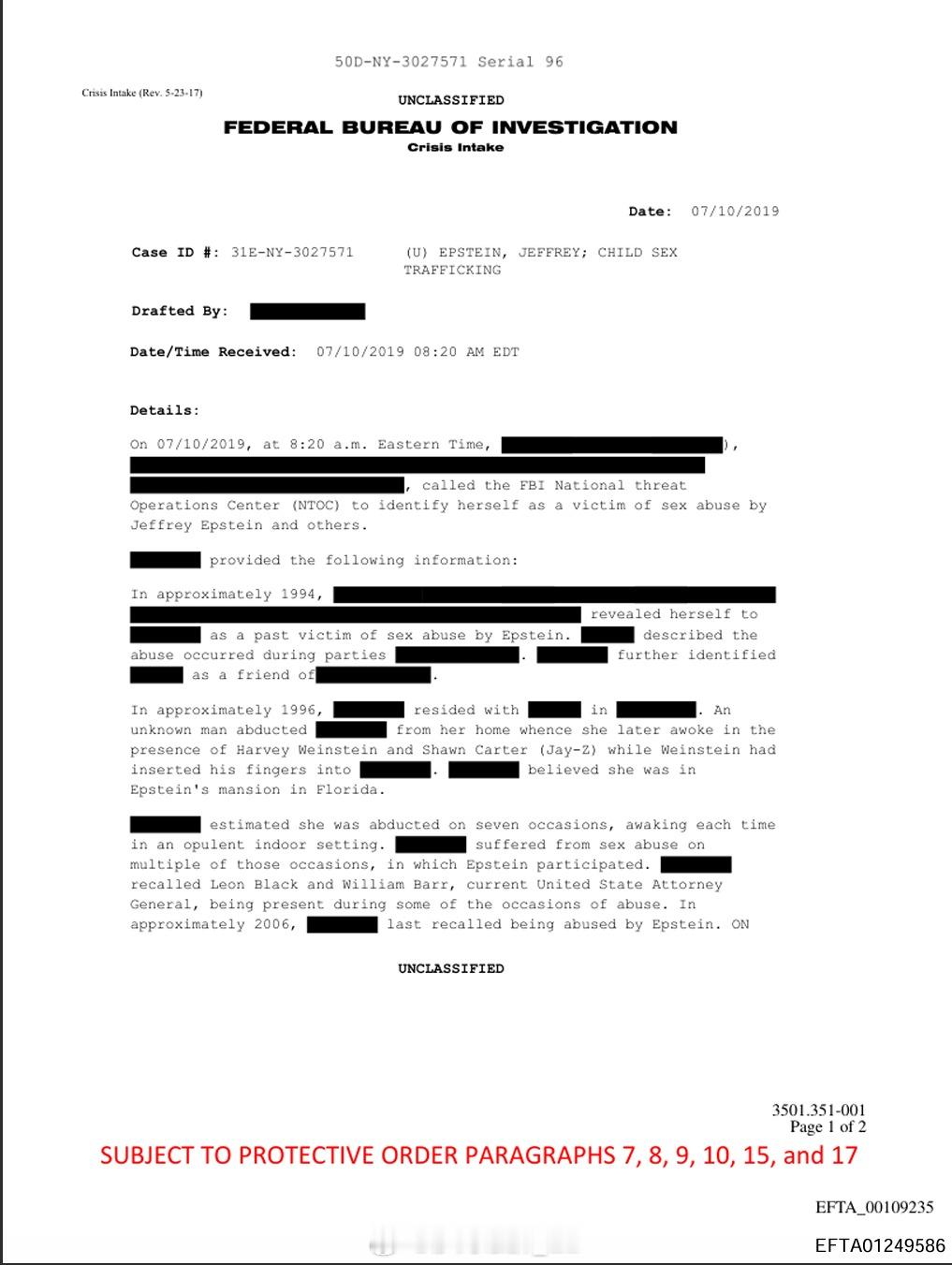 不过证词中有大量涂黑,一部分是保护受害者隐私,另一部分不清楚具体的涂黑目的。