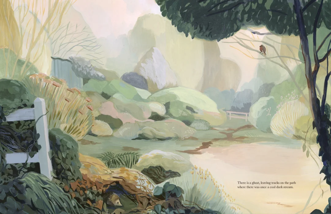 爷爷的花园里有个鬼。它在曾经有一条凉爽黑暗的小溪的小路旁留下了痕迹。它撞翻花盆会捣乱。有时,它会给这个好奇的男孩留下一份完美的礼物,那就是过去的小宝贝。