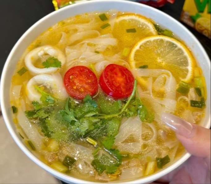 深夜放毒。把昨天剩的酸菜鸡蛋炒饭倒进越南pho粉里面煮热,结果意外发现了绝世美味