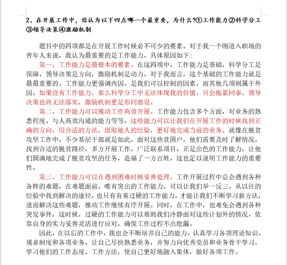 第一题审题很简单,但是结合工作实际的话,根据结合情况可能会出现分差。第二题算是个特殊的态度观点吧,四选一,都不难。