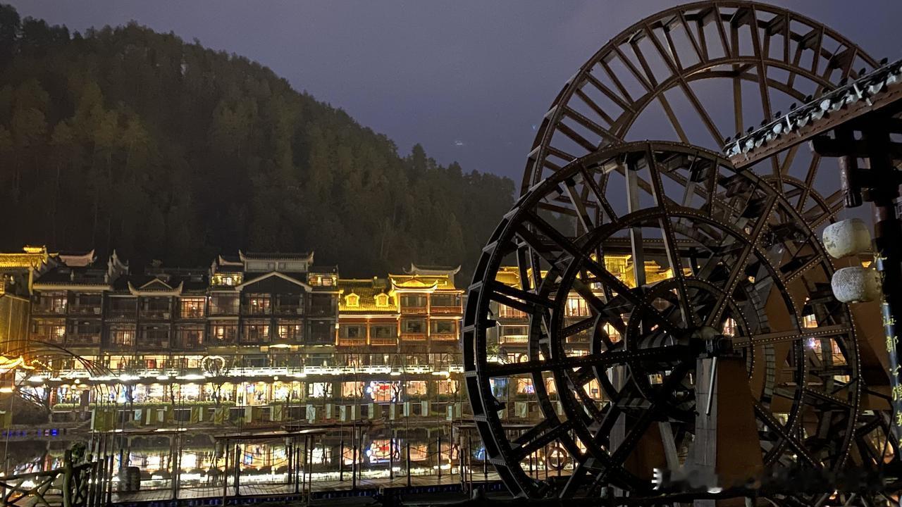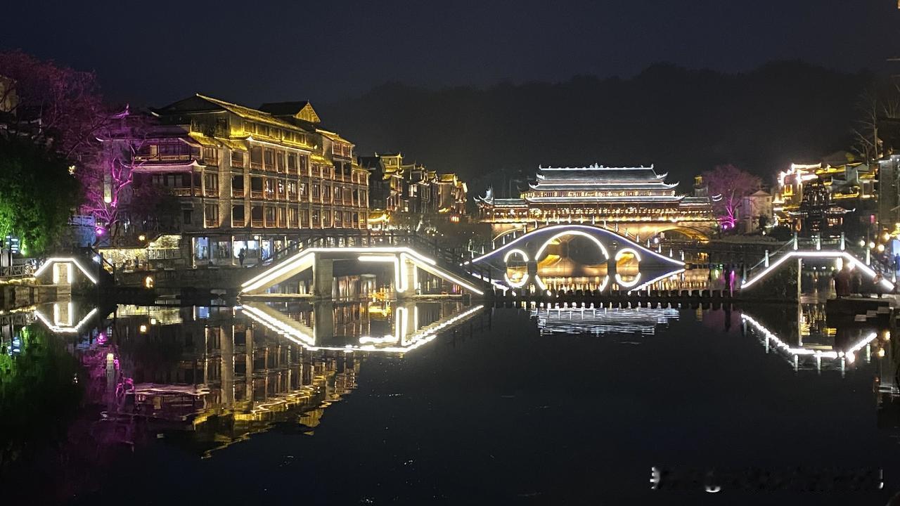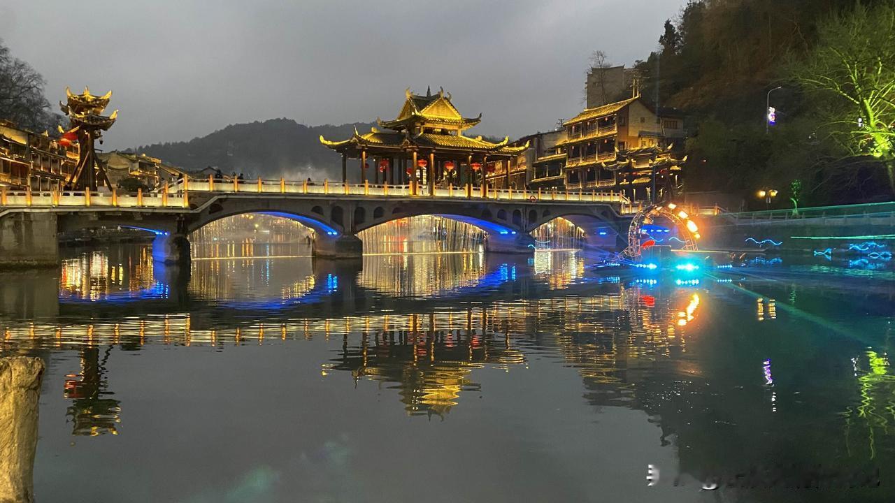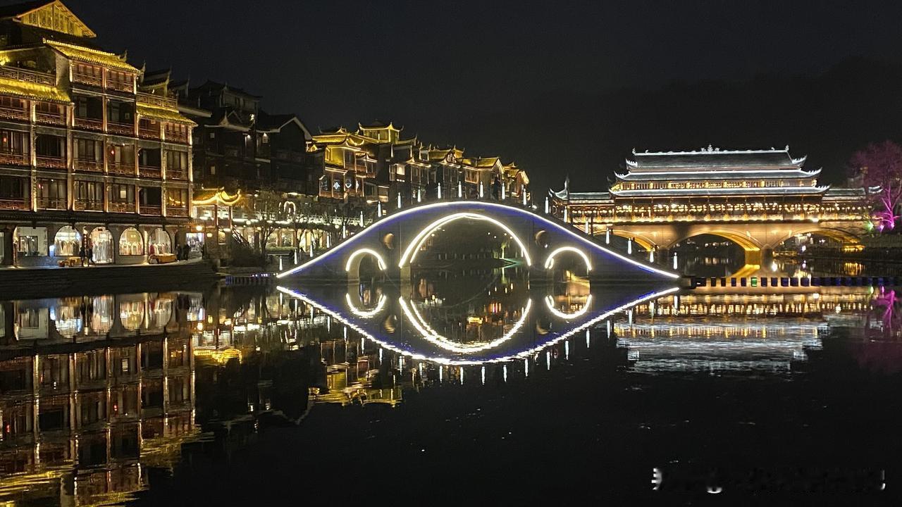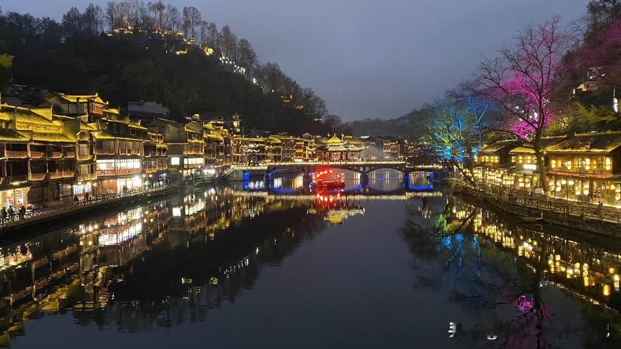 原来,真的是浆声灯影、华灯映彩的凤凰,才更加有韵味! 湖南美景看湘西,武陵山水堪称奇。凤凰,是这片山水中的奇绝。 从溆浦西行至凤凰不过百余公里,本以为可以从容游逛古城,未料途中往返40公里去往辰溪沙堆村,既为圆一个心愿,也为沉醉细雨迷蒙中的沅江美景,还专程去到村民家中品尝并购买辰溪脐橙和黄金贡柑,数小时逗留,到达凤凰古城时,已是临近黄昏。 此次行程特意绕道规划凤凰古城,是因为两年前春夏之交的湘西之旅错过了它,此次必须把它补上。 相信很多人跟我一样,是因为沈从文老先生的清雅文字,才知道了凤凰,知道了这里有青翠葱茏的南华山,有清澈碧绿的沱江水,有极富特色的吊脚楼,有咿咿呀呀的大水车,还有浓郁淳朴的苗家风情……而所有这一切,都会在华灯初上之时,变得愈加梦幻迷离、流光溢彩,仿若天界仙境! 凤凰古城灼灼其华的夜景,恕我词穷,无法用语言述其形! 冬日生活打卡季 凤凰古城 凤凰古城旅游区 凤凰县旅游 湘西沱江夜景