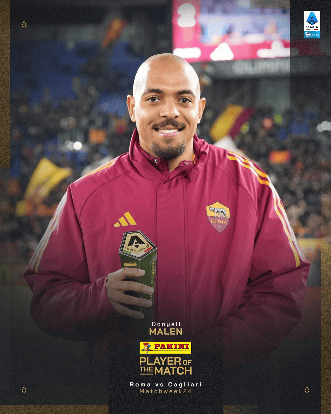梅开二度!意甲官方:马伦当选罗马vs卡利亚里全场最佳球员