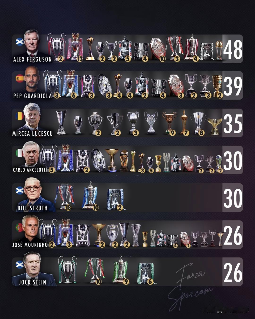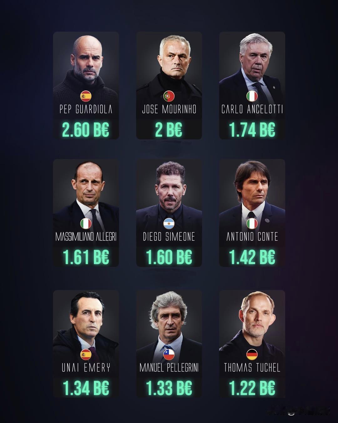 转会支出🆚冠军纪录 我们盘点了全球在转会市场上花费最多、同时捧杯数量也最多的主教练👀 ◼️ 转会支出最高的俱乐部均出自瓜迪奥拉执教的球队,这位西班牙教头也因此成为全球夺冠数量第二多的主帅… ➡️ 最新数据显示,在2025-26赛季冬窗转会中,曼城以9500万欧元支出位居全球榜首… ◼️ 在预算方面最接近瓜迪奥拉的,是本菲卡主帅穆里尼奥。而穆里尼奥与安切洛蒂并列成为全球夺冠种类最丰富的两位主教练。 ◼️ 西蒙尼、阿莱格里、孔蒂、佩莱格里尼、埃梅里和图赫尔均位列“转会支出最高主帅”榜单,却未能进入“冠军数量最多主帅”排行榜…