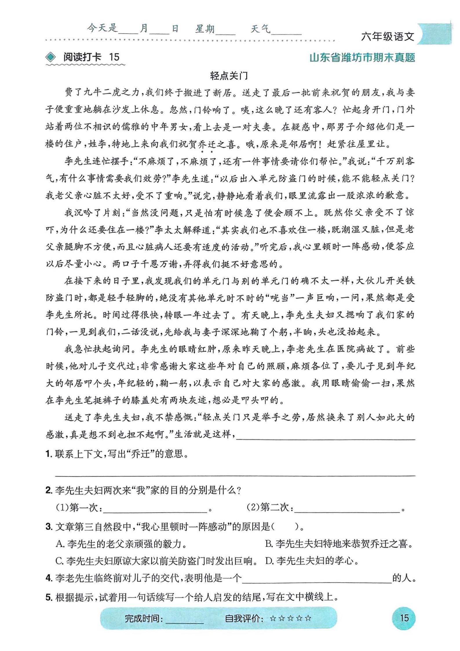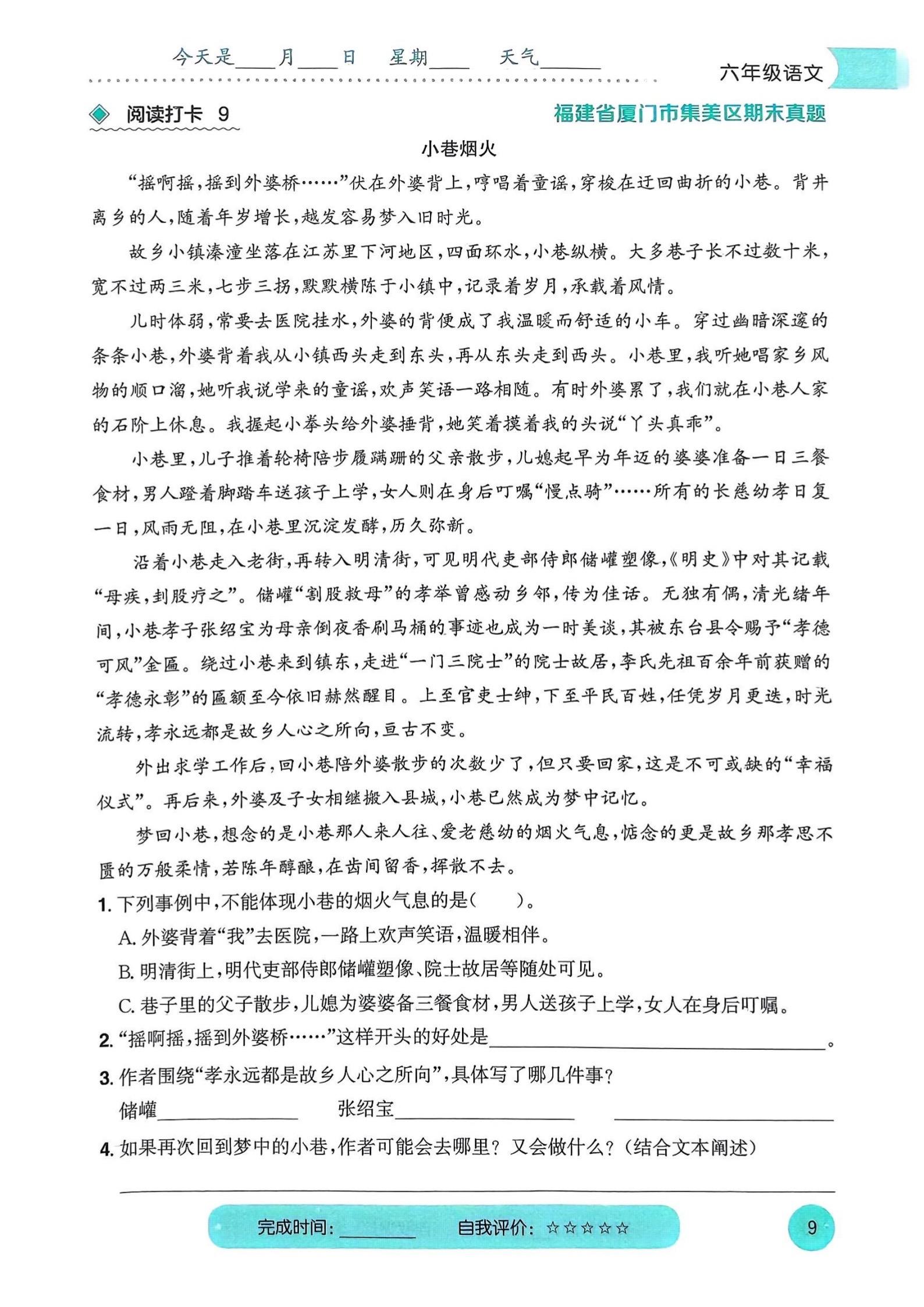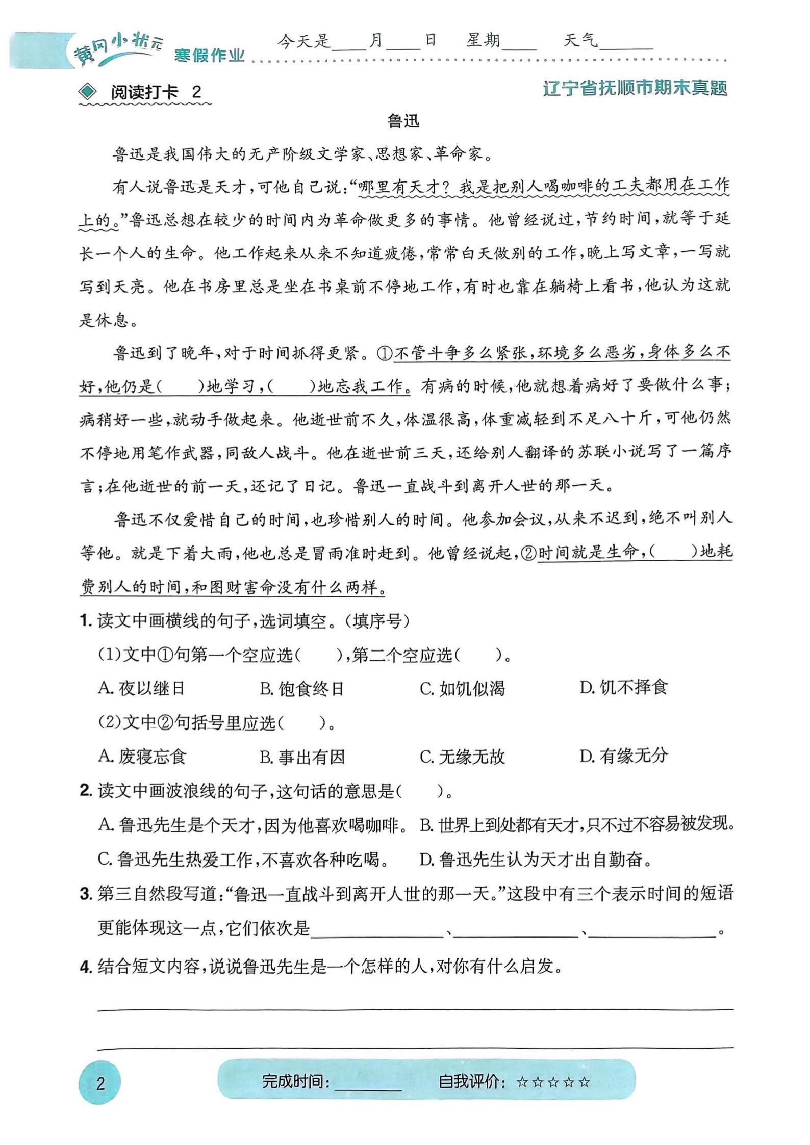 2026春小学六年级语文寒假预习阅读打卡。 ,八方文印店。有需要...
