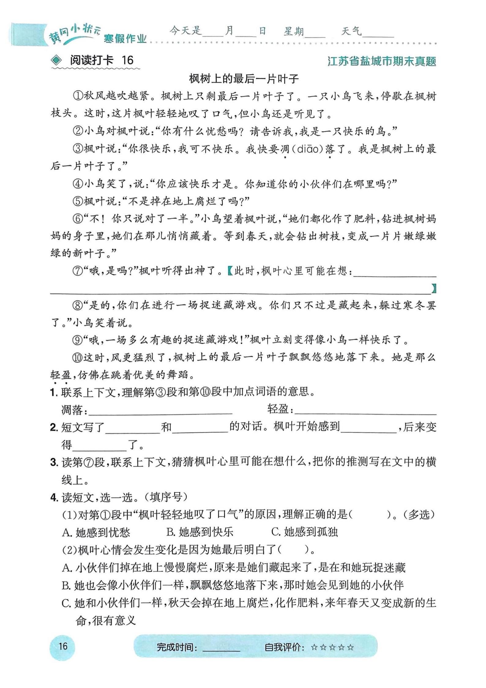 2026春小学三年级语文下册寒假阅读打卡。 八方文印店。有需要可...