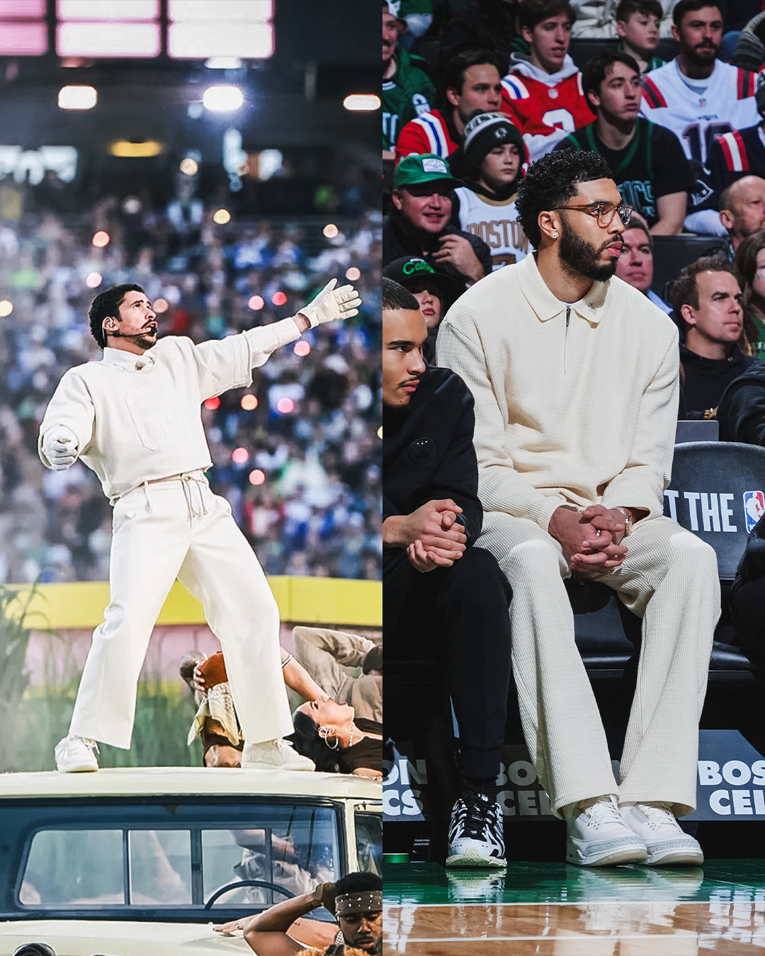 虎扑02月09日讯凯尔特人官方更新推文,晒出一张对比图,将凯尔特人球员杰森-塔图姆在场边观战时的穿搭,与超级碗中场秀嘉宾、著名歌手BadBunny的造型并列呈现,与球迷分享。