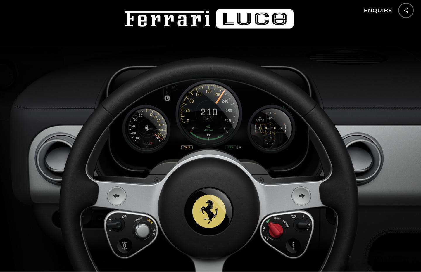 法拉利首款纯电跑车Luce(意大利语“光”),公布了其内饰效果图,由前苹果首席设
