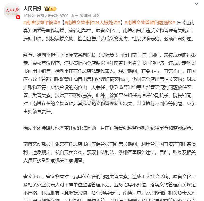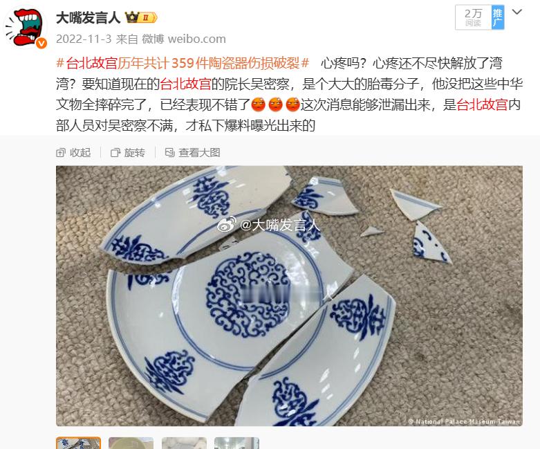 南博徐湖平被查,南博文物管理问题通报,热点观点,台北故宫历年共计359件陶瓷器伤损破裂