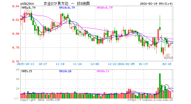 2月10日,农业ETF易方达(562900)开盘涨0.00%,报0.786元。农业ETF易方达(562900)重仓股方面,牧原股份开盘跌0.41%,温氏股份涨0.00%,海大集团涨0.00%,正邦科技涨0.31%,新希望涨0.23%,梅花生物跌0.18%,生物股份涨0.00%,大北农涨0.00%,隆平高科跌0.30%,北大荒跌0.26%。
