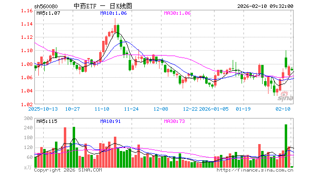 2月10日,中药ETF(560080)开盘跌0.37%,报1.072元。中药ETF(560080)重仓股方面,云南白药开盘涨0.00%,片仔癀跌0.07%,同仁堂跌0.03%,东阿阿胶涨0.00%,华润三九跌0.78%,吉林敖东跌0.10%,白云山涨0.12%,以岭药业跌0.44%,达仁堂涨0.04%,众生药业跌0.66%。