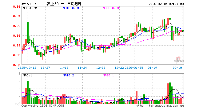 2月10日,农业ETF银华(159827)开盘涨0.00%,报0.910元。农业ETF银华(159827)重仓股方面,牧原股份开盘跌0.41%,温氏股份涨0.00%,海大集团涨0.00%,藏格矿业涨0.37%,盐湖股份跌0.12%,亚钾国际跌0.11%,正邦科技涨0.31%,新希望涨0.23%,梅花生物跌0.18%,扬农化工涨2.06%。