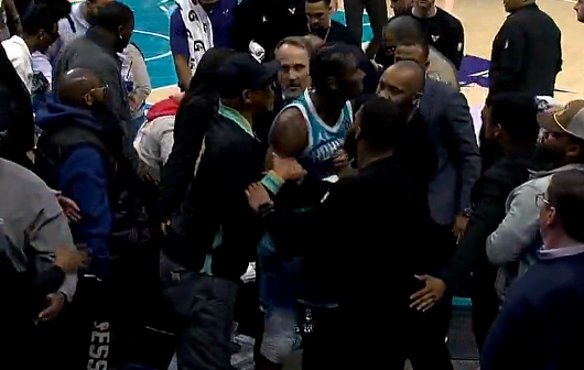 比赛的第三节,活塞黄蜂爆发大规模冲突,迪亚巴特拳击杜伦导致两队缠斗到一起,随后布里奇斯冲进场地追打活塞球员,迪亚巴特在裁判做出判罚前就被工作人员拉出场地。